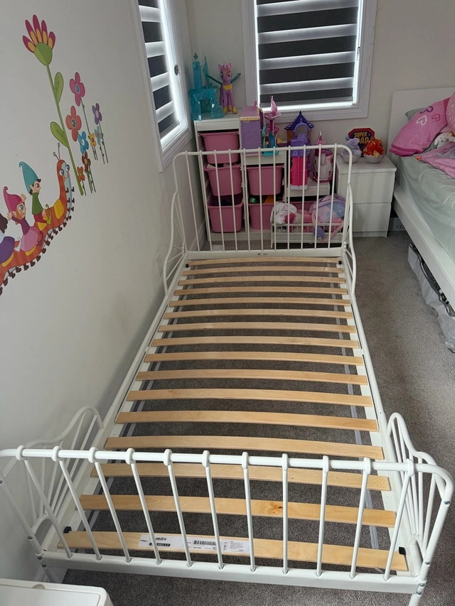 Twin Bed Frame with Slatted Base - White