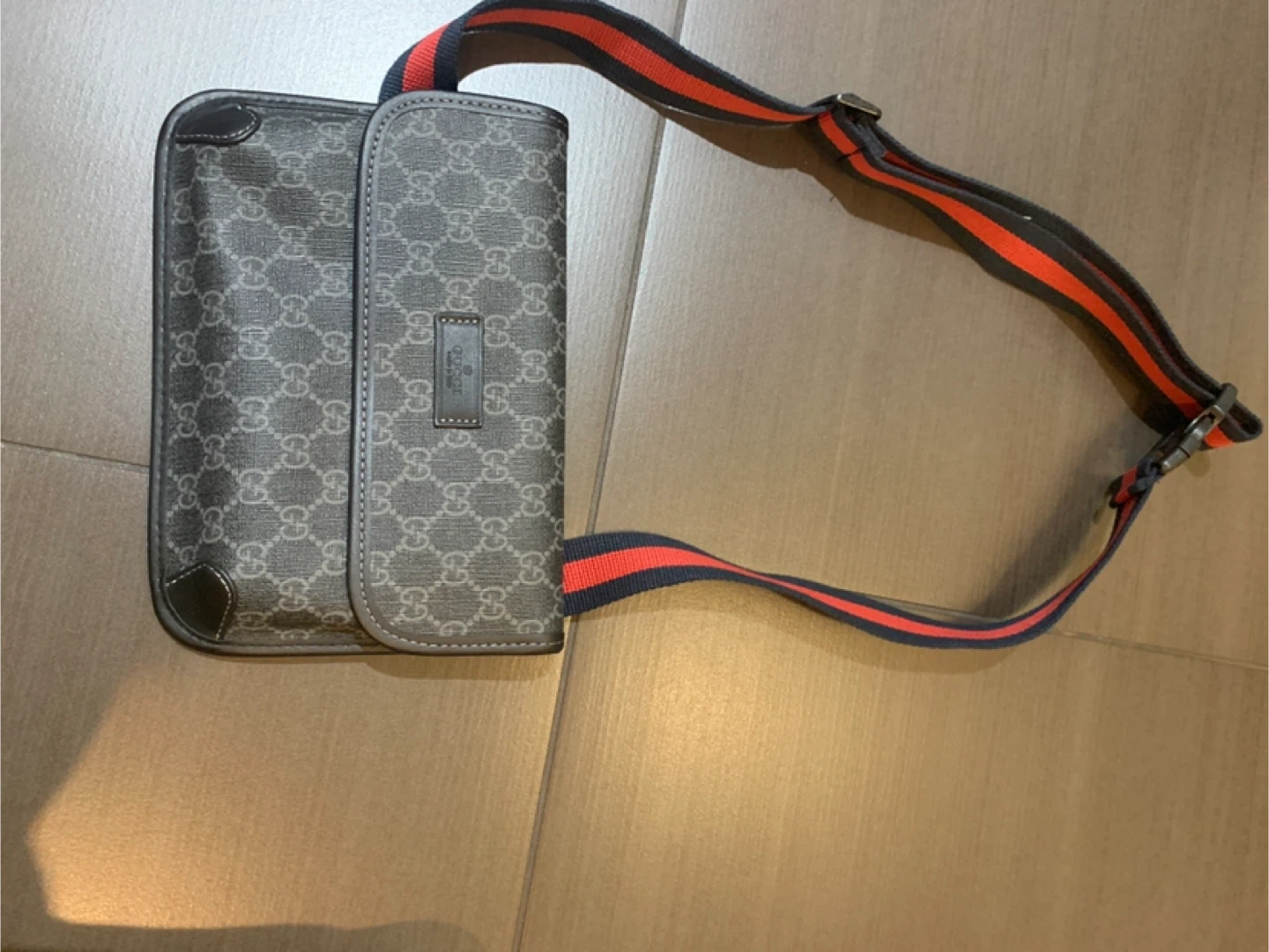 36Selling a Gucci belt bag! It's in great condition and features the classic Gucci pattern with a red and navy strap. Perfect for keeping your essentials close and adding a touch of style to any outfit