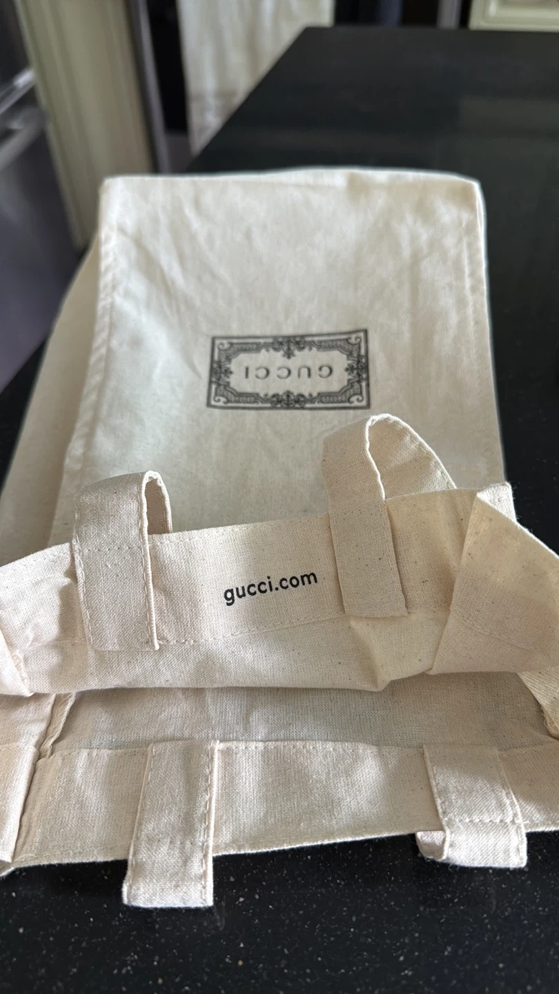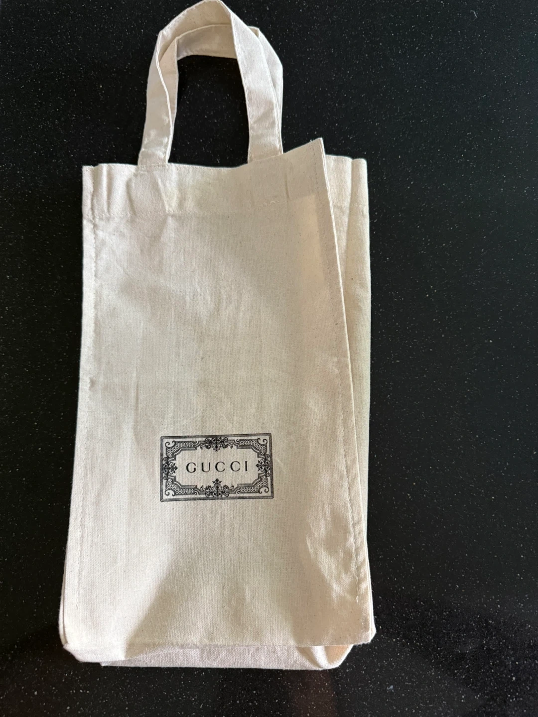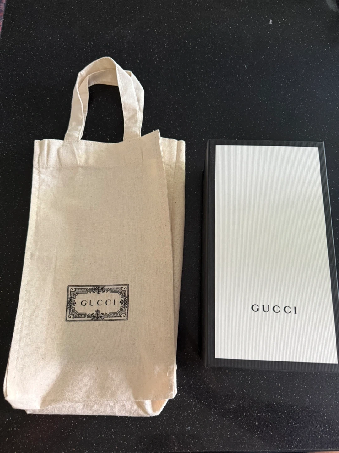 124Selling a Gucci box and tote bag. Perfect for storing or gifting your Gucci items! The tote bag is great for shopping or everyday use. Comes with a dust bag as well