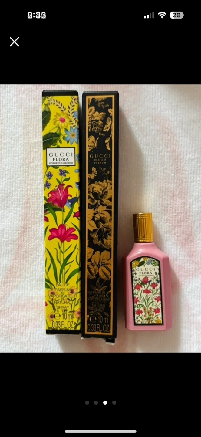 Selling a cute set of Gucci perfumes! Includes: - Gucci Flora Gorgeous Orchid Eau de Parfum 10ml - Gucci Bloom Parfum 10ml Perfect for trying out these lovely scents!