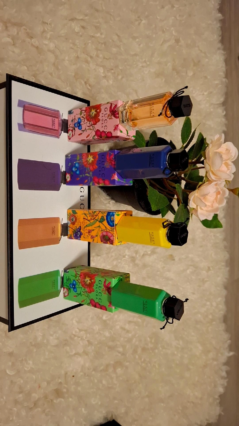Selling a set of Gucci Flora Gorgeous Gardenia perfumes! Each perfume has its own unique scent and colour. Perfect for collectors or anyone who loves variety in their fragrance collection