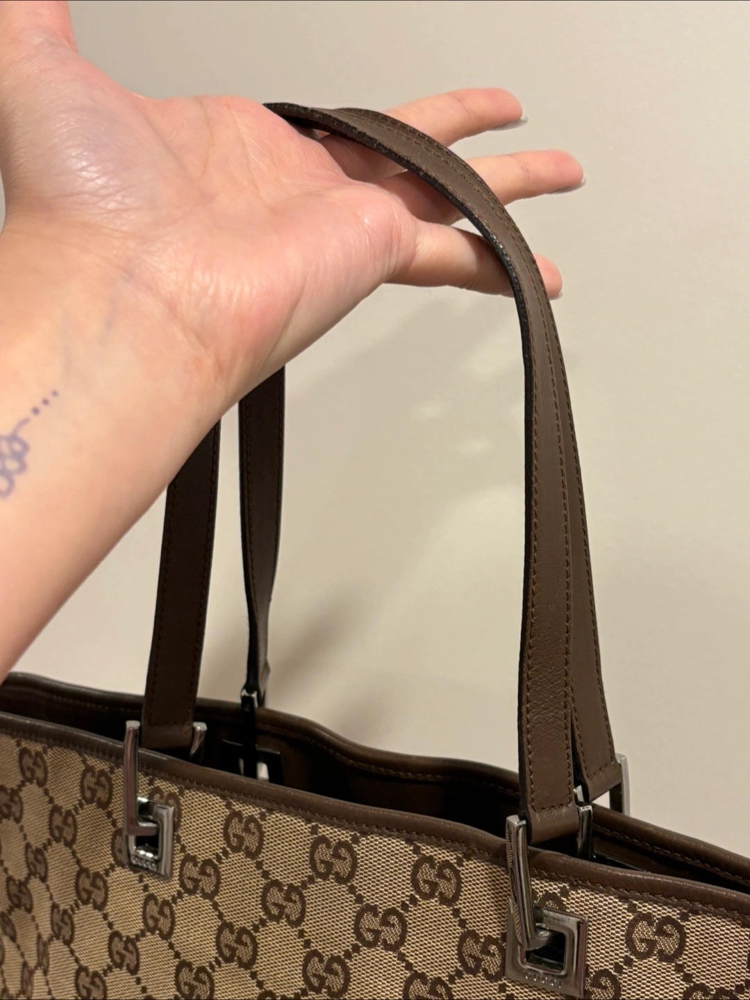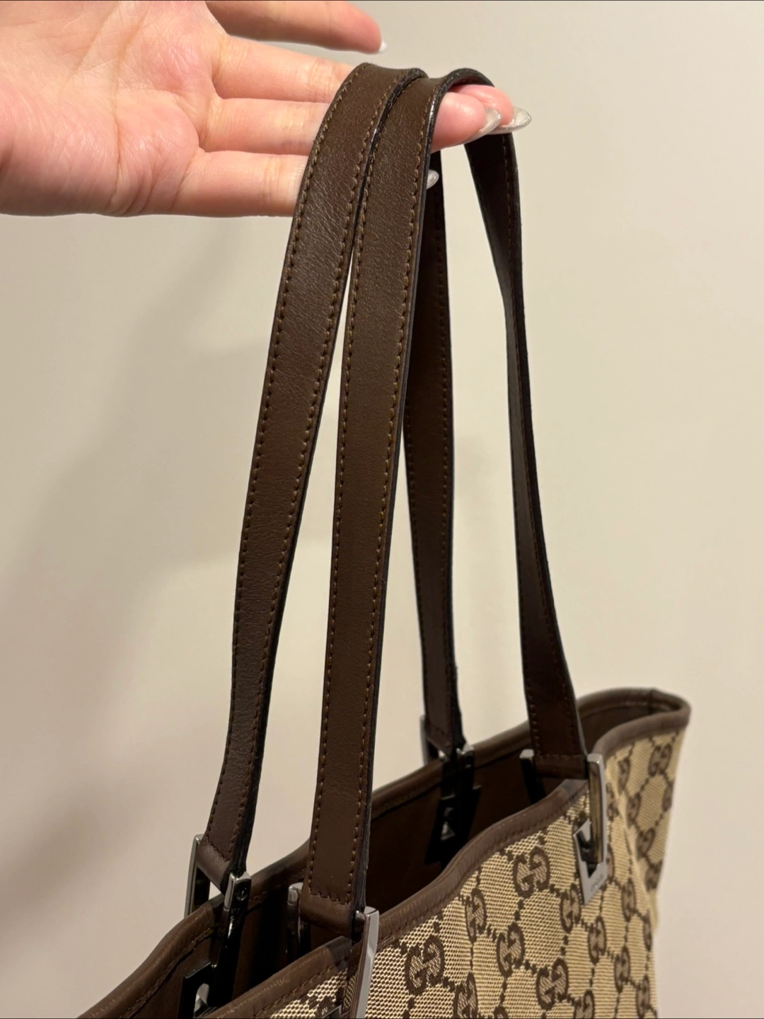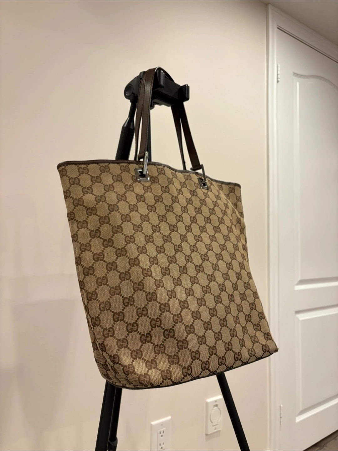Stylish, authentic vintage Gucci tote that goes with any outfit! Can easily carry a 13” laptop so it’s great as a work bag or an everyday tote for someone who likes to carry more than just the essentials. Originally purchased from a reputable luxury consignment business in Canada. Still in very good vintage condition (8/10), but there is some minor wear pictured in the corners.