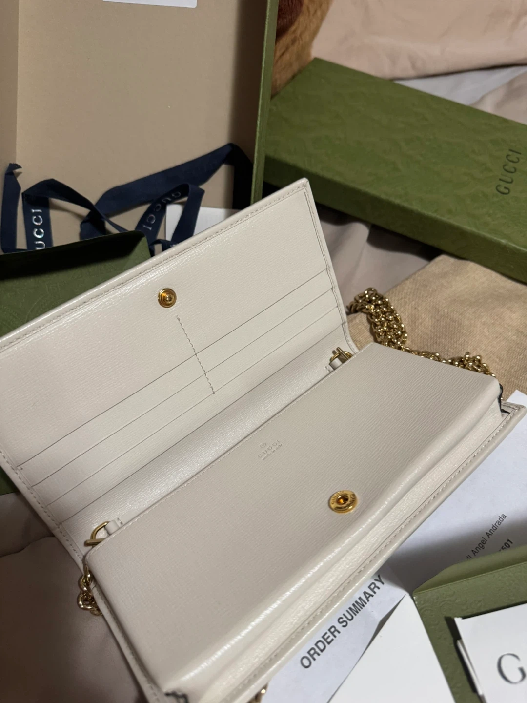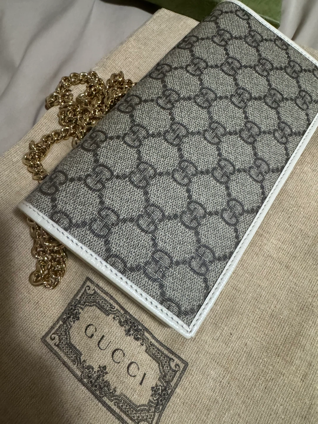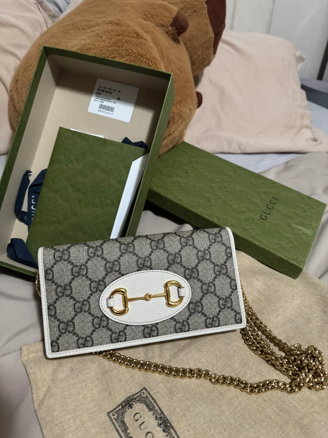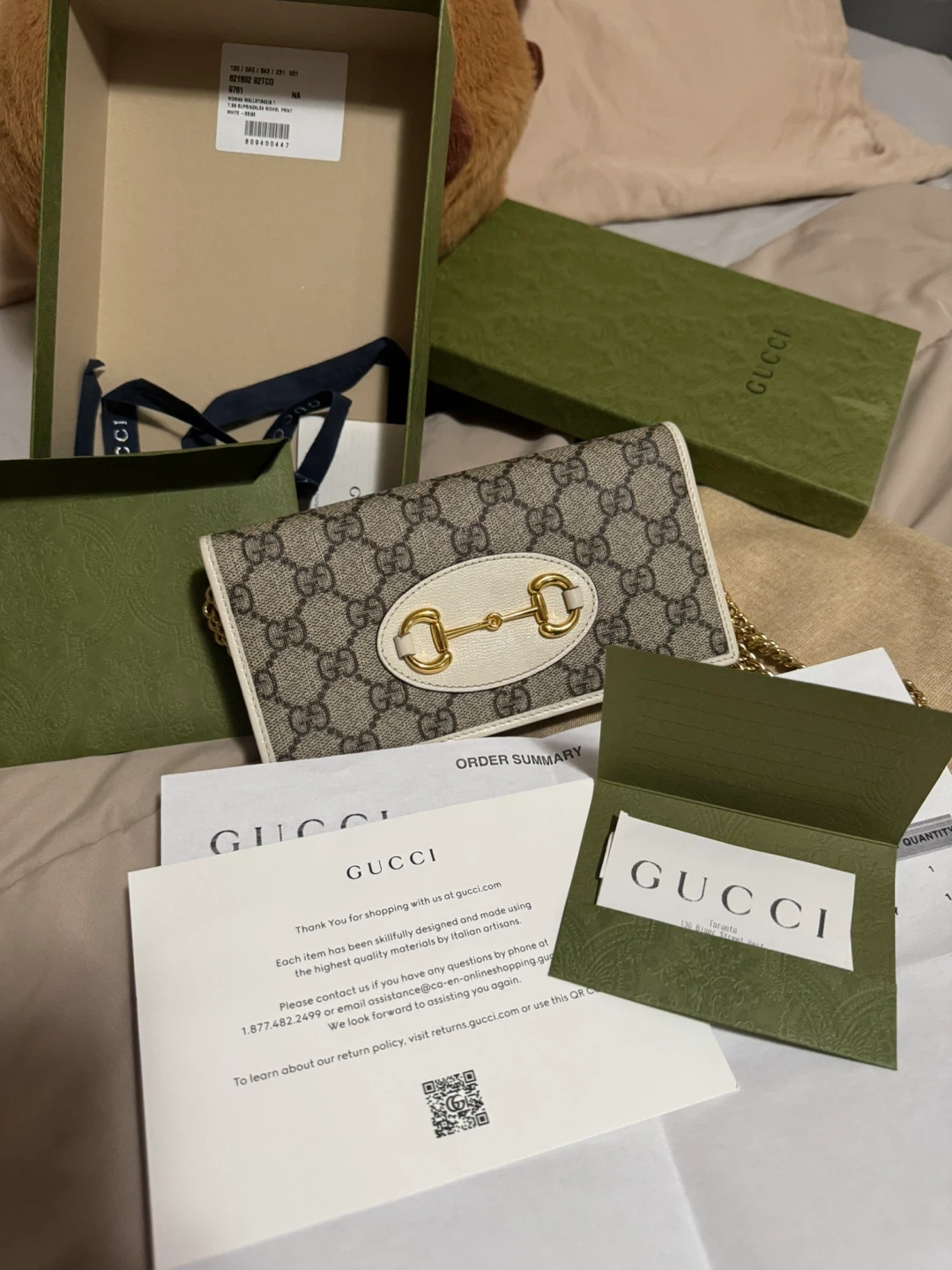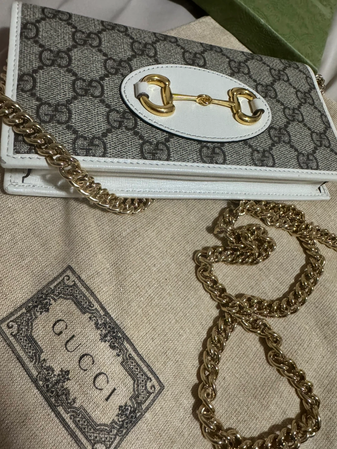 Selling a beautiful Gucci Horsebit 1955 chain wallet in GG Supreme! It comes with the original box and all the original packaging. Originally bought for $1,445.00. It's in excellent condition and ready for a new home!