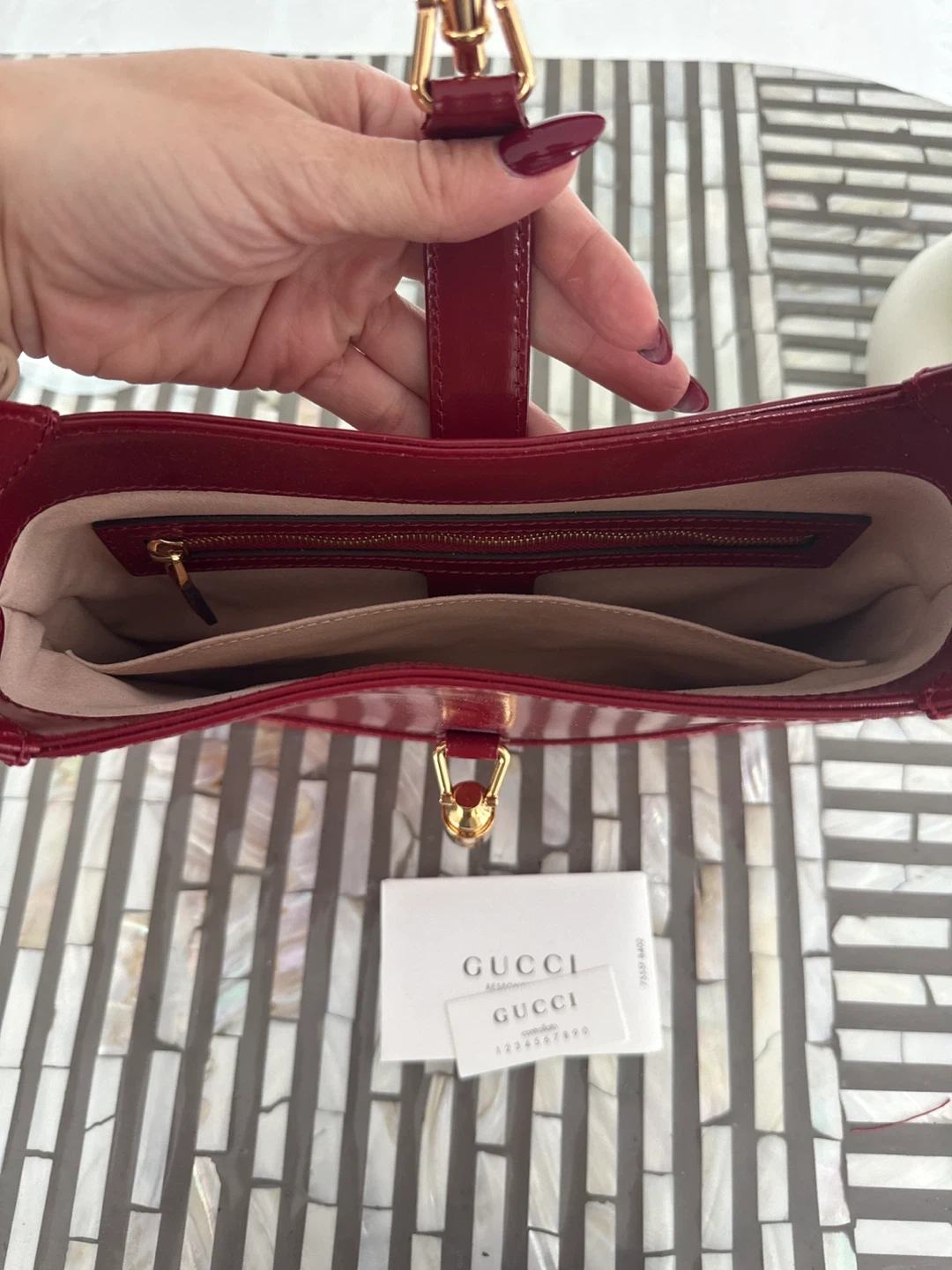 Selling a beautiful Gucci Jackie 1961 mini hobo bag in a striking red colour! This stylish bag is perfect for adding a pop of colour to any outfit. It's in great condition and ready for a new home