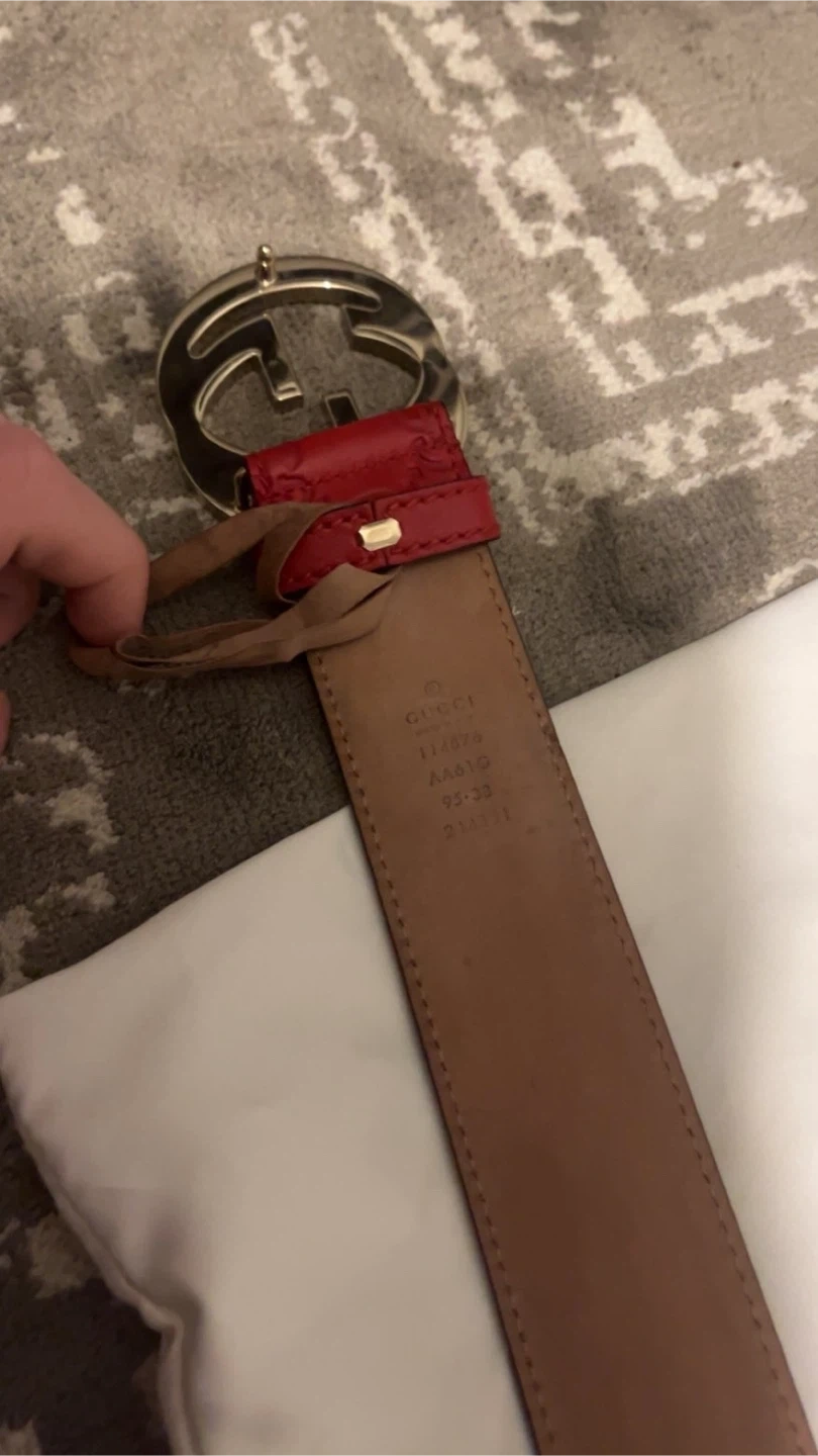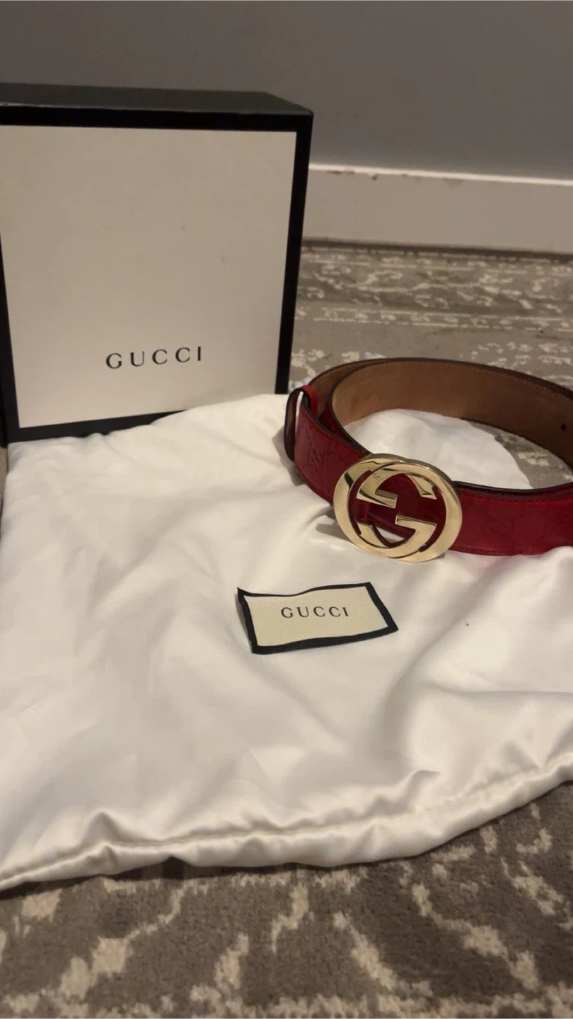 30Selling a stylish Gucci belt in red leather! It features the iconic interlocking G buckle. The belt is in great condition and comes with its original box and dust bag. It's a beautiful accessory to add a pop of colour to any outfit! 100% authentic feel free to check it out