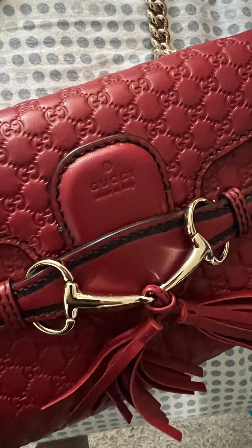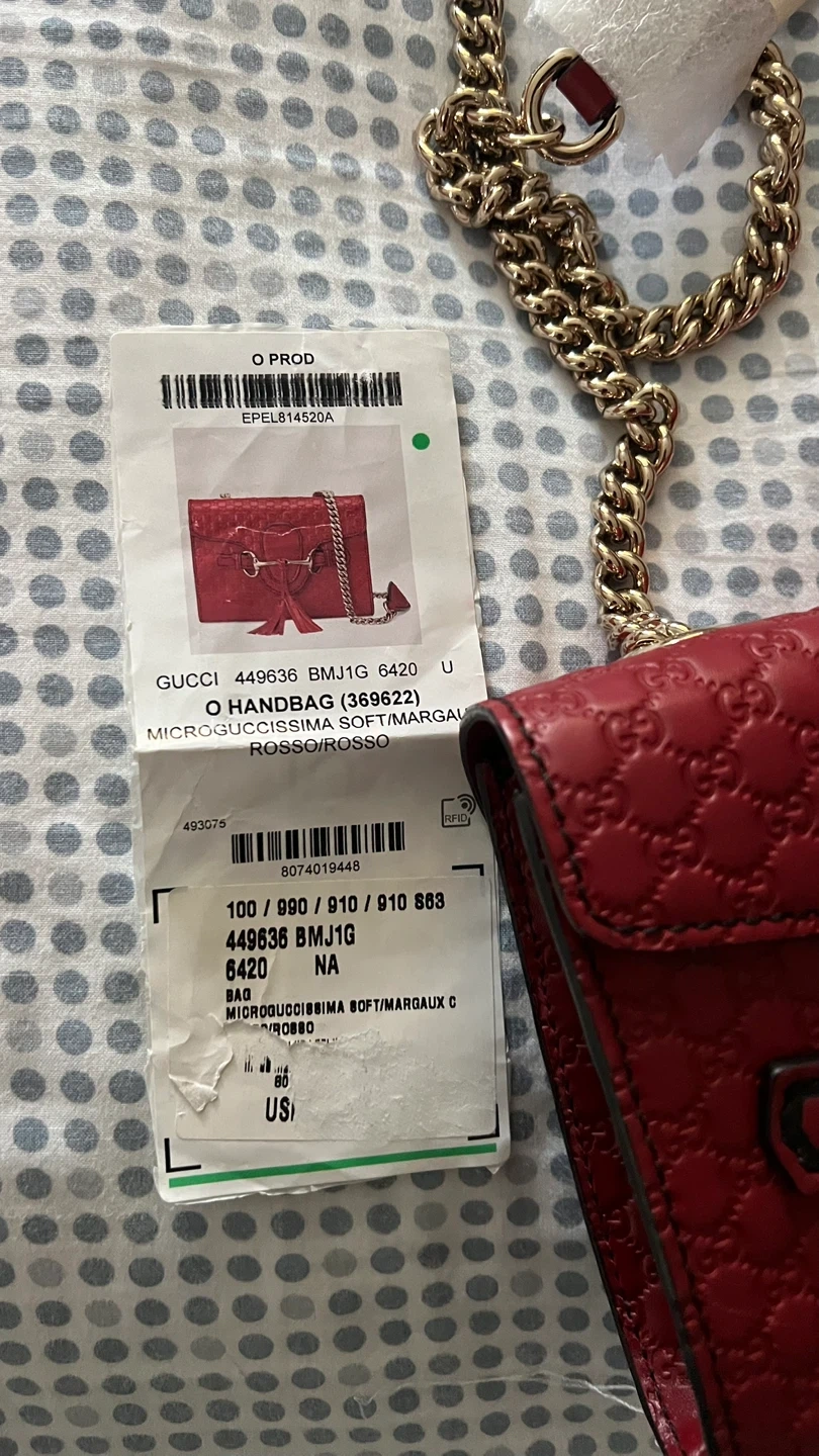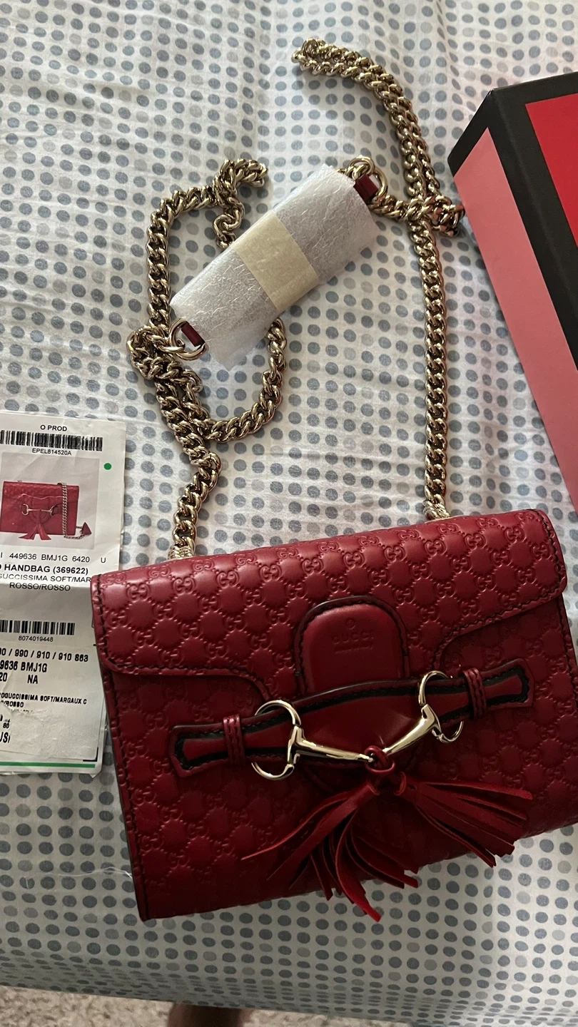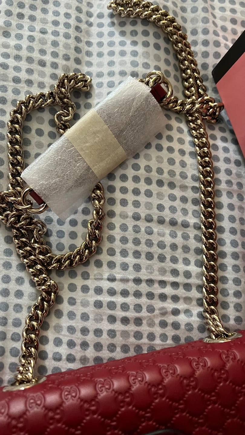 75Selling a beautiful Gucci chain bag in Rosso (red)! It's a Microguccissima Soft Margaux style handbag. Comes with the original box Used twice.
