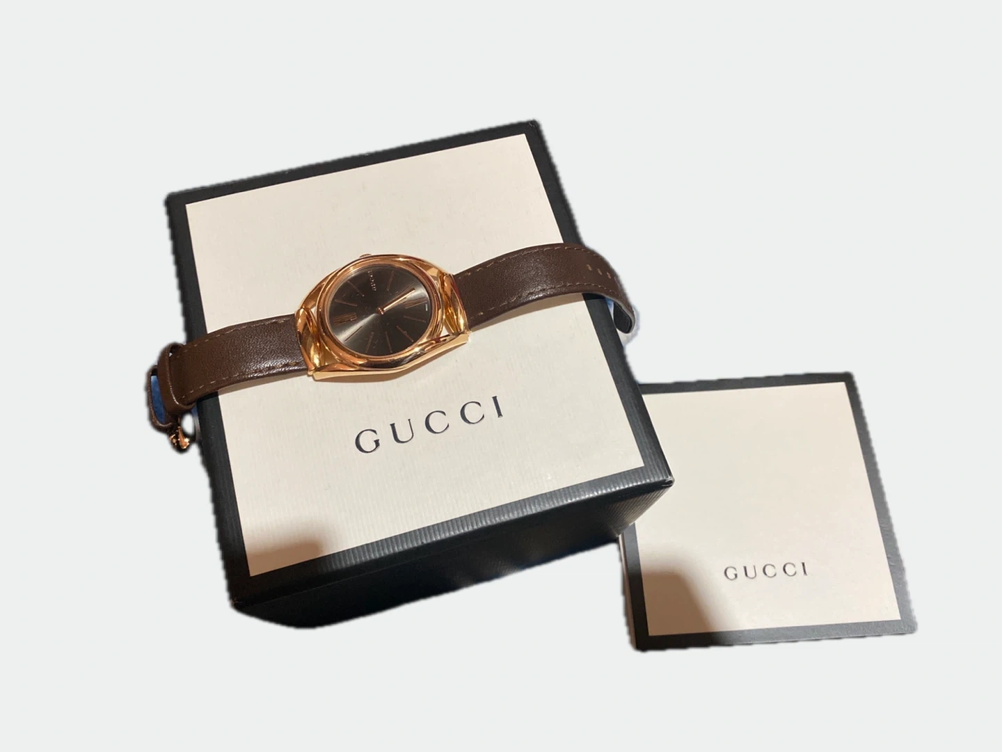 65Selling a Gucci watch, it comes with its original box and papers. The watch features a stylish design with a brown leather strap and a gold-tone case. It's in great condition and ready to wear!