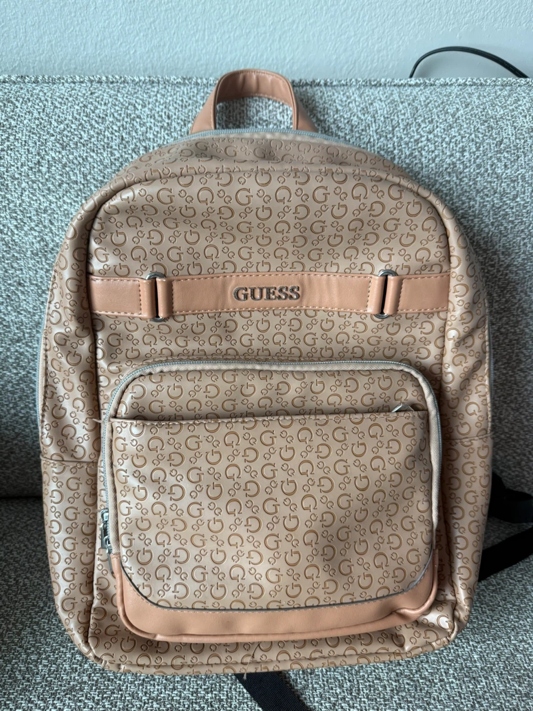 Selling a Guess backpack in a lovely beige colour. It features the classic Guess logo pattern all over. Perfect for everyday use!
