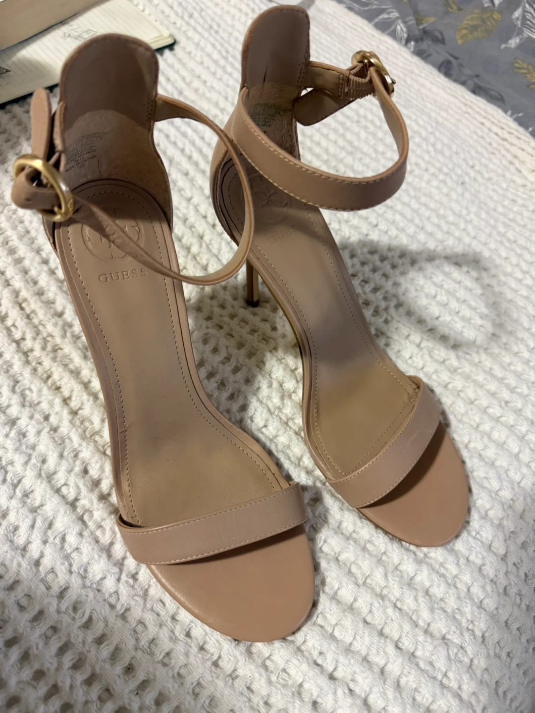 Selling a pair of Guess heels in a beige colour. They are a size 8.5 and have a cute gold buckle. Perfect for dressing up or down!