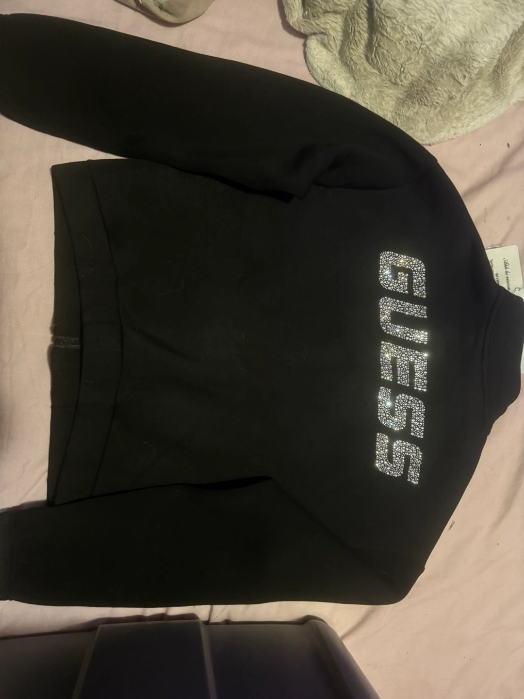 Selling a brand new Guess tracksuit in black! It's a size small and in great condition. Perfect for lounging or running errands around town. The Guess logo is prominently displayed on the back of the jacket and on the pants I paid 230$ asking 150$ trying to get most of my money back as I am gaining weight
