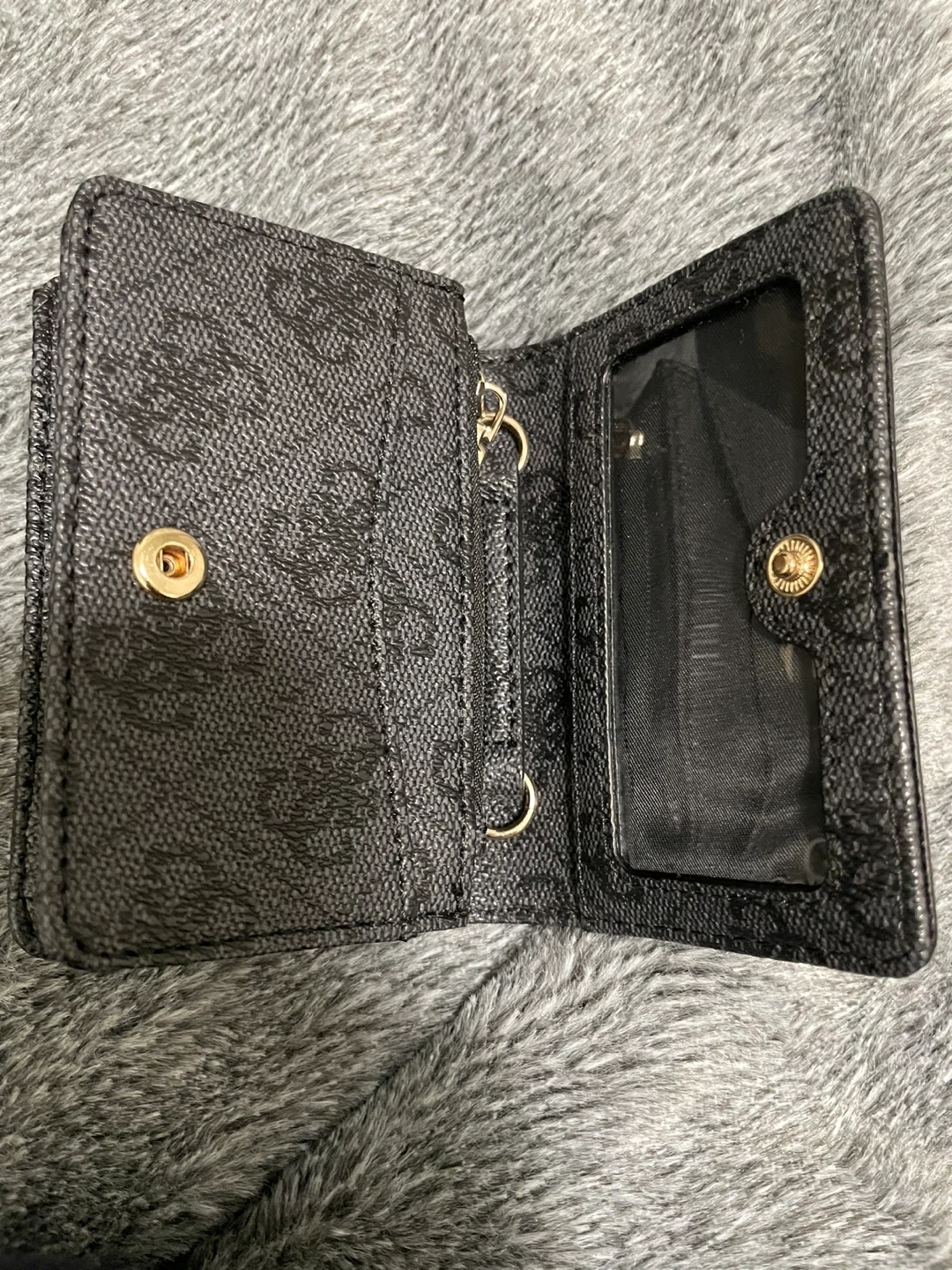 10Selling a Guess wallet in great condition! It's black with the Guess logo pattern. Perfect for cards and cash