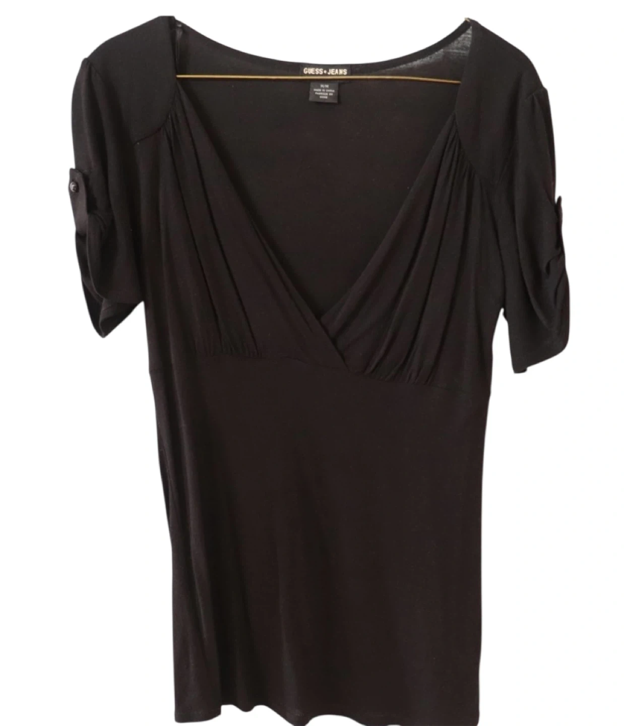 Selling a cute black top from Guess Jeans! It's a size medium and in great condition. Perfect for a casual or dressy look!