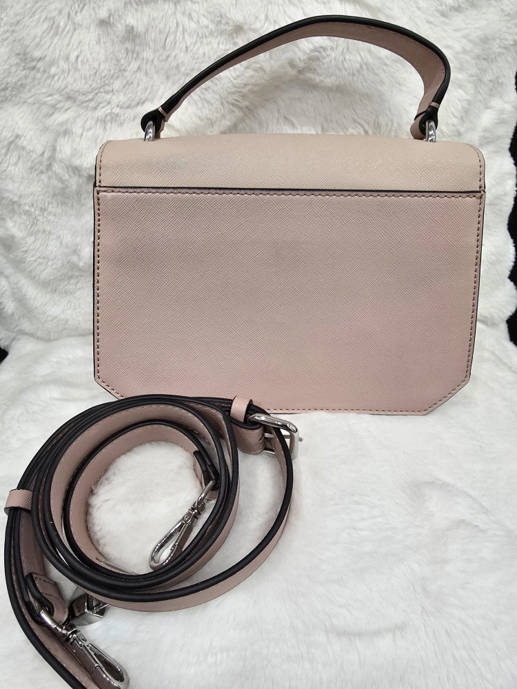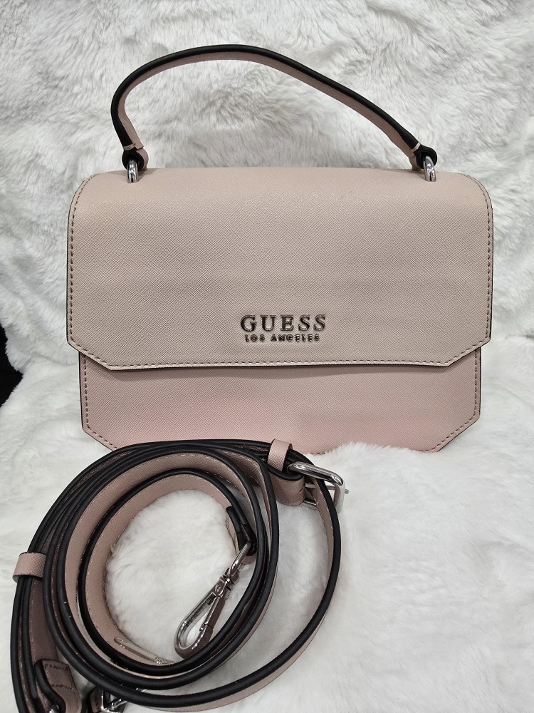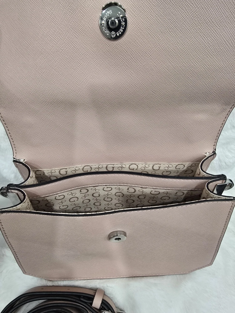 70Here's a cute Guess Los Angeles satchel in a lovely shade of pink. It comes with a detachable strap, so you can carry it as a handbag or wear it as a crossbody. The interior has a stylish G pattern lining.