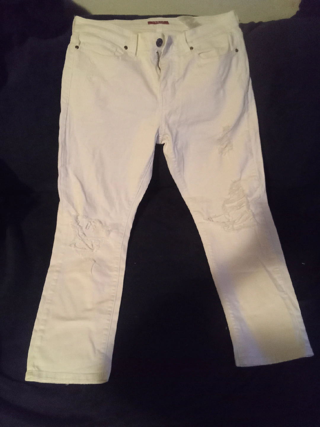 167Selling a pair of white jeans from Guess Los Angeles! They have a bit of a distressed look with some rips. A stylish addition to any wardrobe