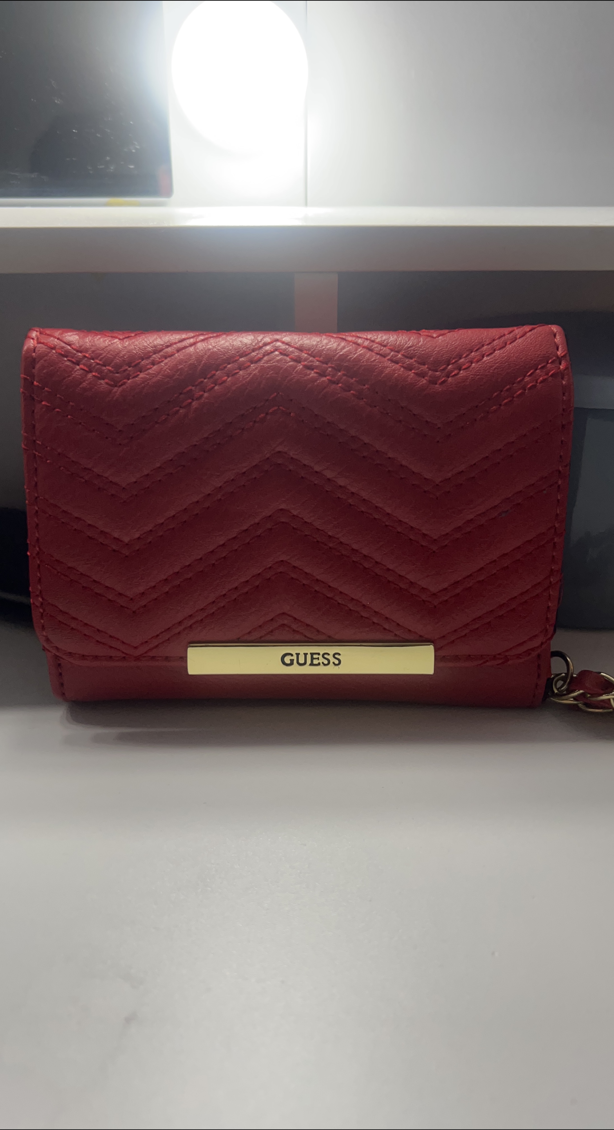 23Selling a cute red Guess wallet! It's in great condition and has a stylish chevron pattern. Perfect for keeping your cards and cash organized.