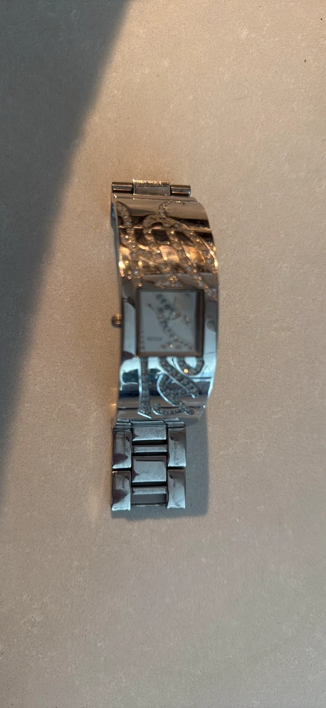 10Selling a Guess watch with a silver tone and crystal accents. It's in great condition and ready for a new home