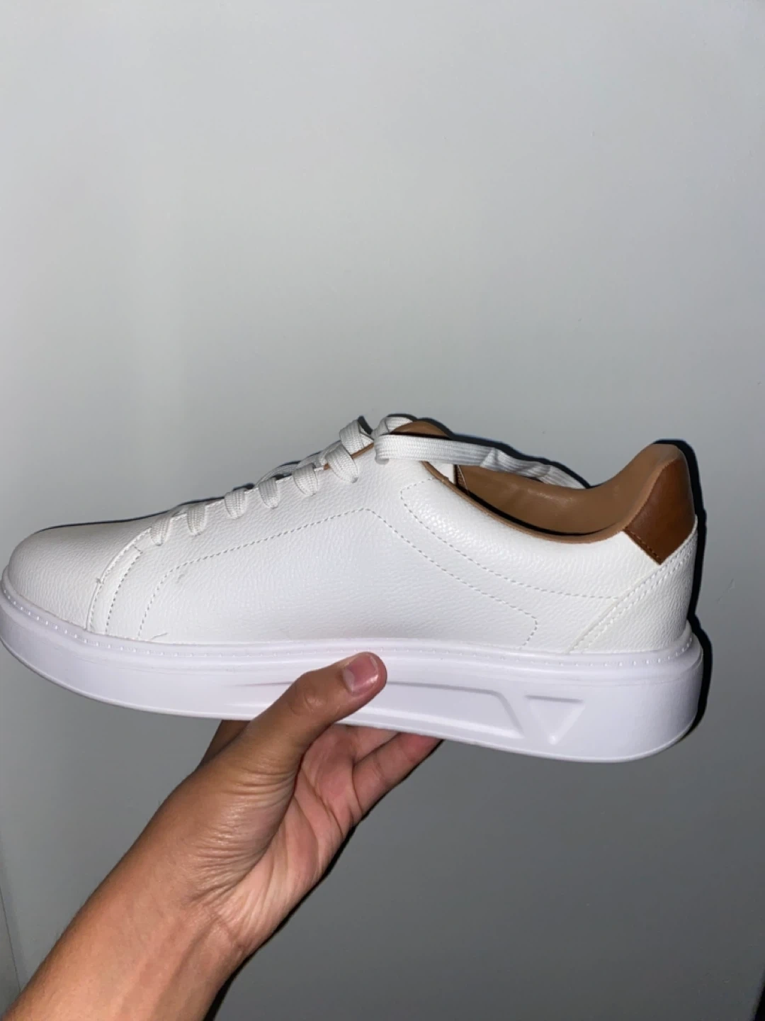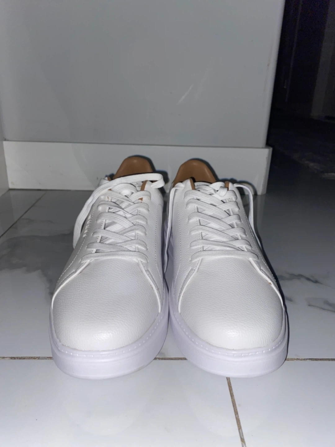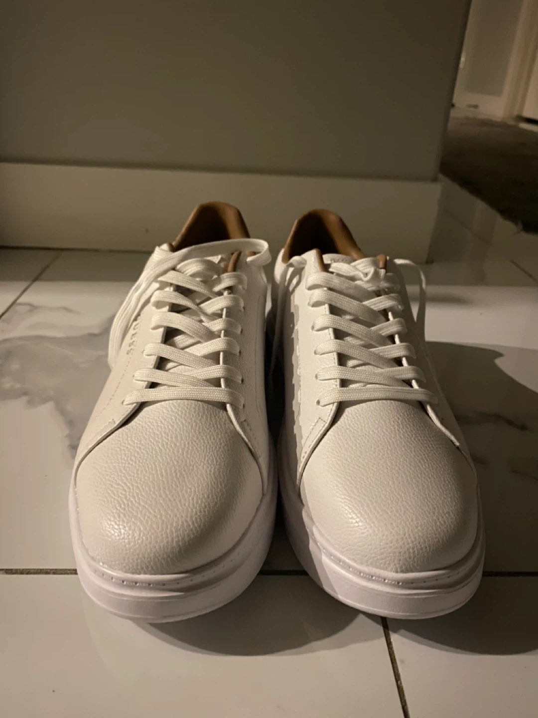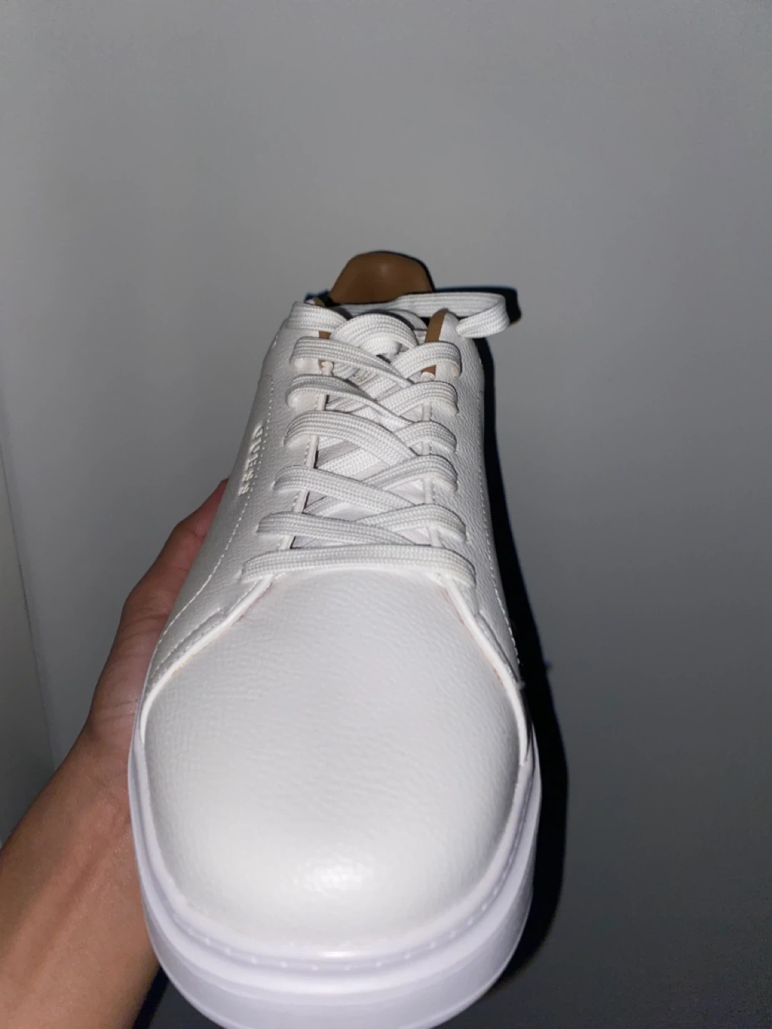 Selling a pair of Guess white leather sneakers in excellent condition! These stylish sneakers feature a classic design with a comfortable fit. The size is US 11. Perfect for everyday wear!
