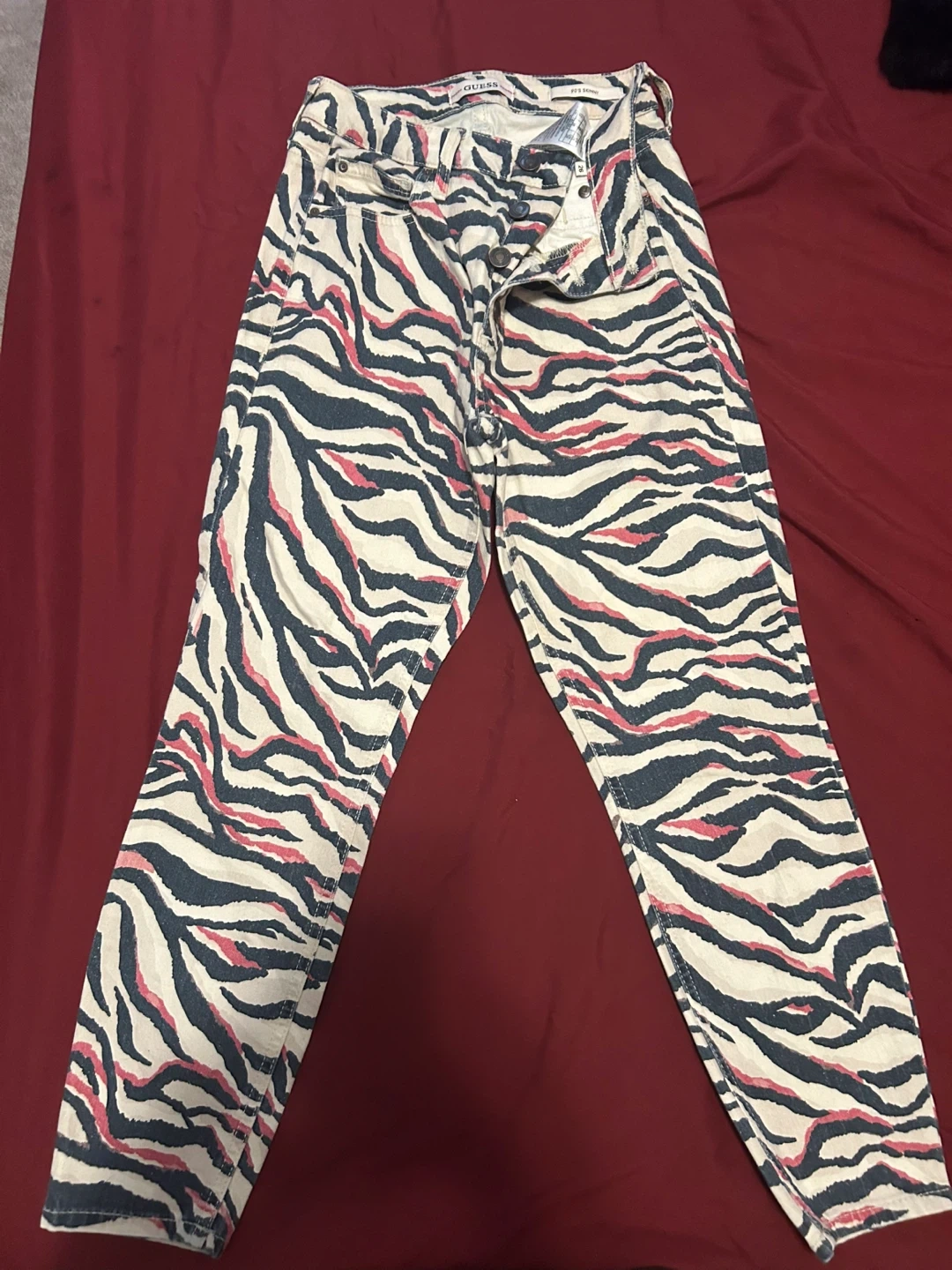 86Selling a pair of Guess jeans with a unique zebra print! They are a size 26 and in great condition. These jeans are sure to make a statement! Only worn a few times sexy jeans