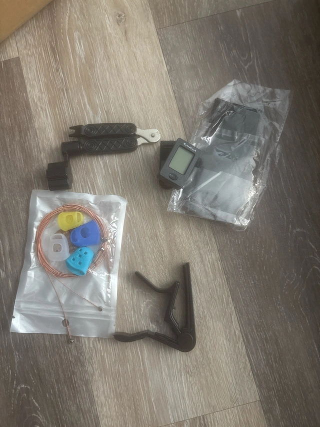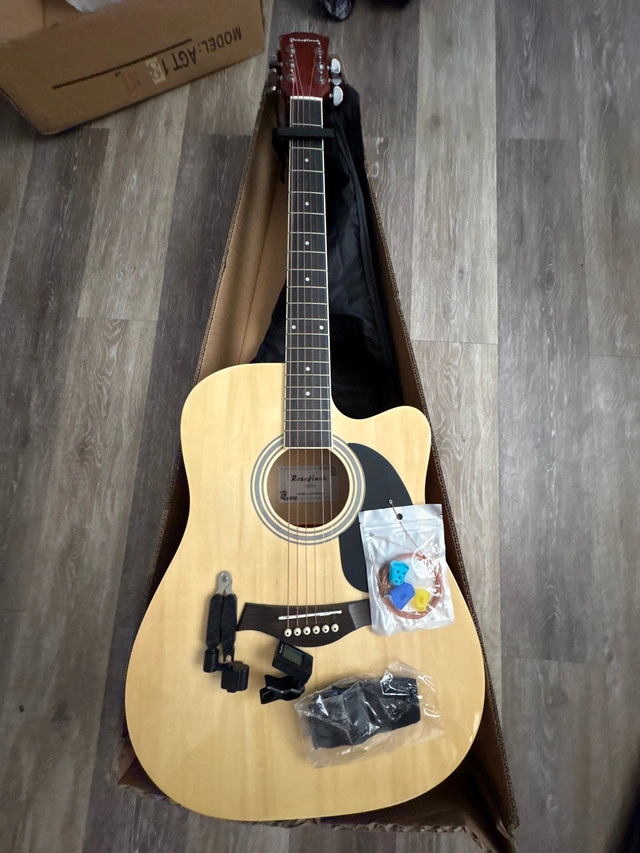 This guitar has been lightly strummed and is in good condition. Additional Details: * Type: Acoustic Guitar * Includes: Gig bag, digital tuner, capo, picks and strings. If this ad is still up, yes, the guitar is still available!