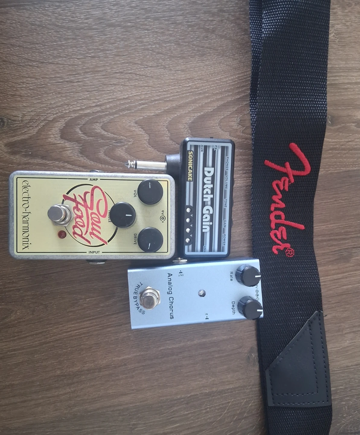 15Laney amp 80$ Soul food pedal 130$ mint condition with box and block Mike stand with holder, pop filter+2 cables 135$ brand new Chorus pedal 20$ brand new Guitar cables 25$ for 2 Amp for headphones 30$ Fender book 20$ Gibson book 20$ Guitar 1,2 30$ for 2 Strings 20$ Guitar stand 20$ Fender strap 15$ Gig bag 50$ Powerful block+extension for 5 pedals 60$ brand new