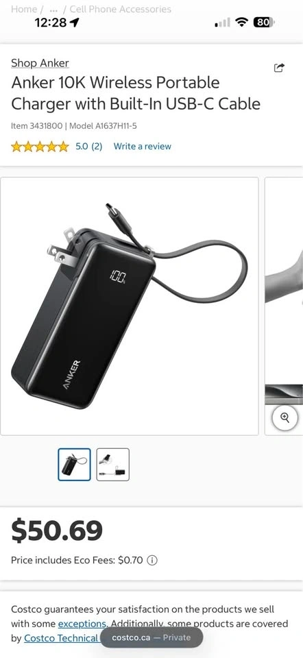 Anker 10K Wireless Portable Charger w/ USB-C Cable