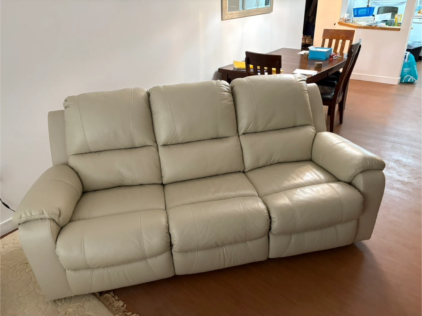3-Seater Beige Leather Reclining Sofa