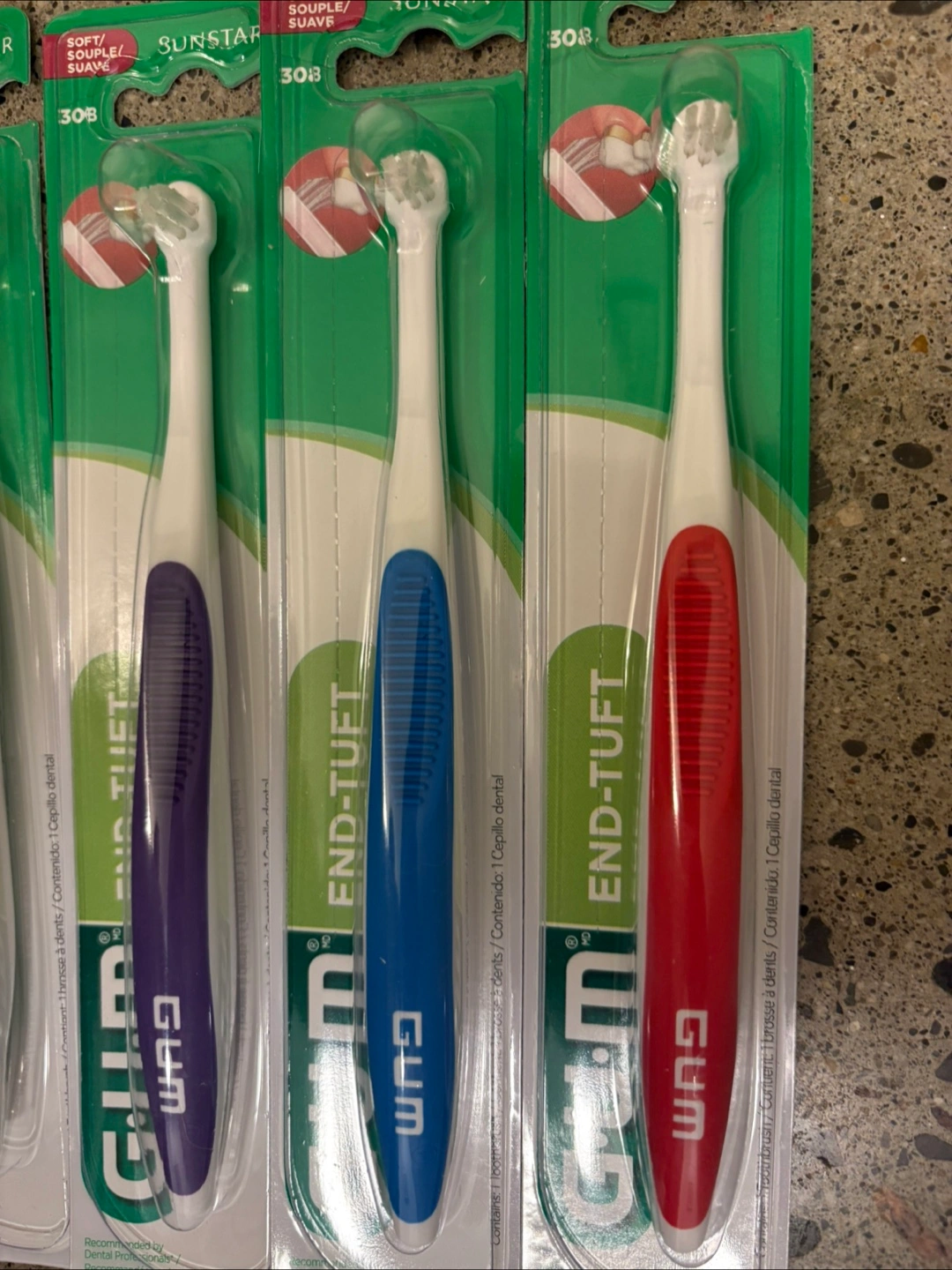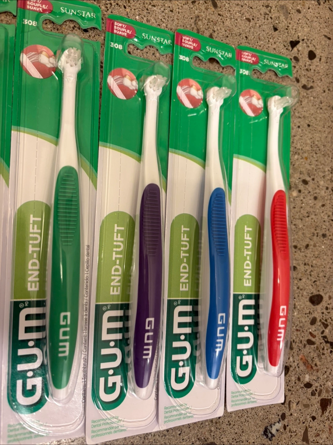 44I'm selling GUM End-Tuft toothbrushes. These have soft bristles and are great for cleaning hard-to-reach areas. Available in a variety of colours!