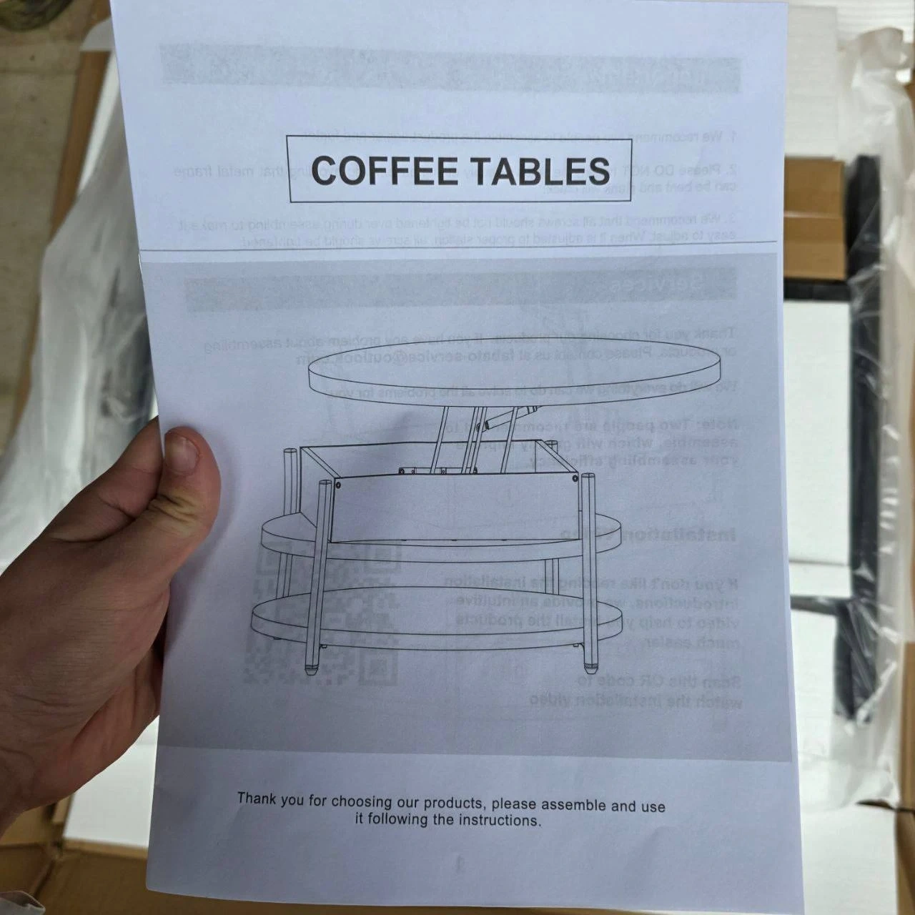 42GUNAITO round lift-top small coffee table with storage and wheels, walnut color. Brand new and never used. Features a convenient storage space and a modern farmhouse design. Perfect for a living room or office space.