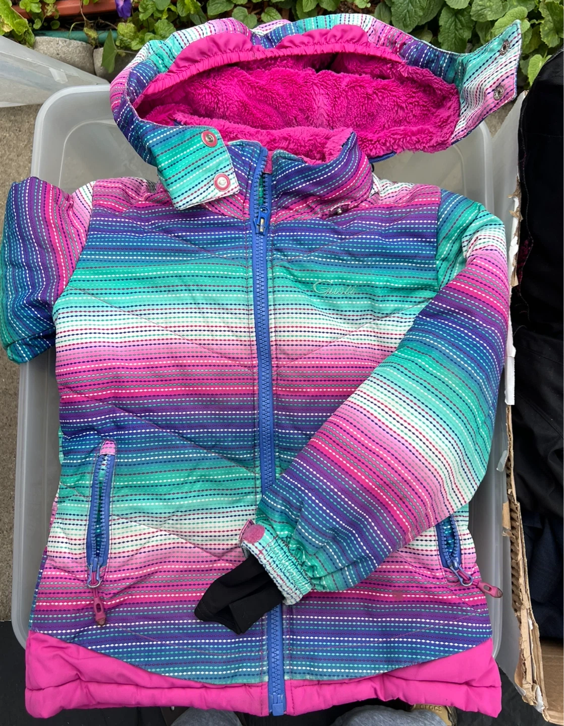 32Selling a cute and colourful Gusti girls' winter jacket in size 8. It's in great condition and perfect for keeping your little one warm during the cold Canadian winters. The jacket features a vibrant striped design with a cozy, soft lining in the hood and body. It also has functional pockets and a full zip closure.