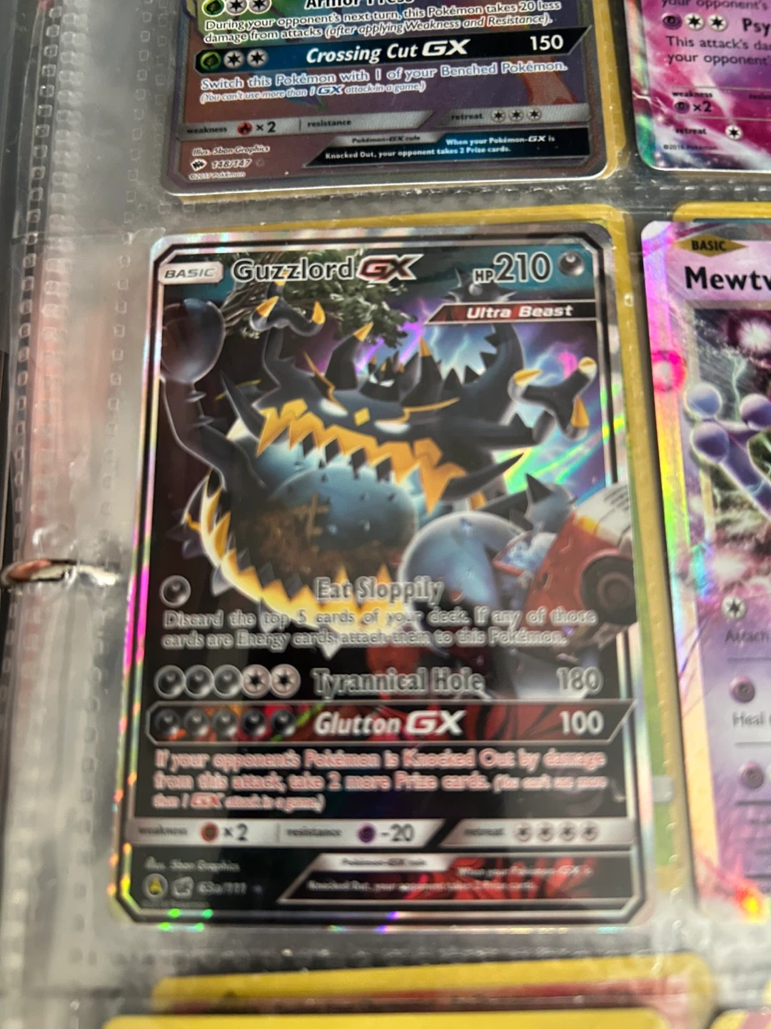 Selling a Guzzlord GX Pokemon card. It's in great shape and ready for a new home! Perfect for collectors or players looking to add to their deck