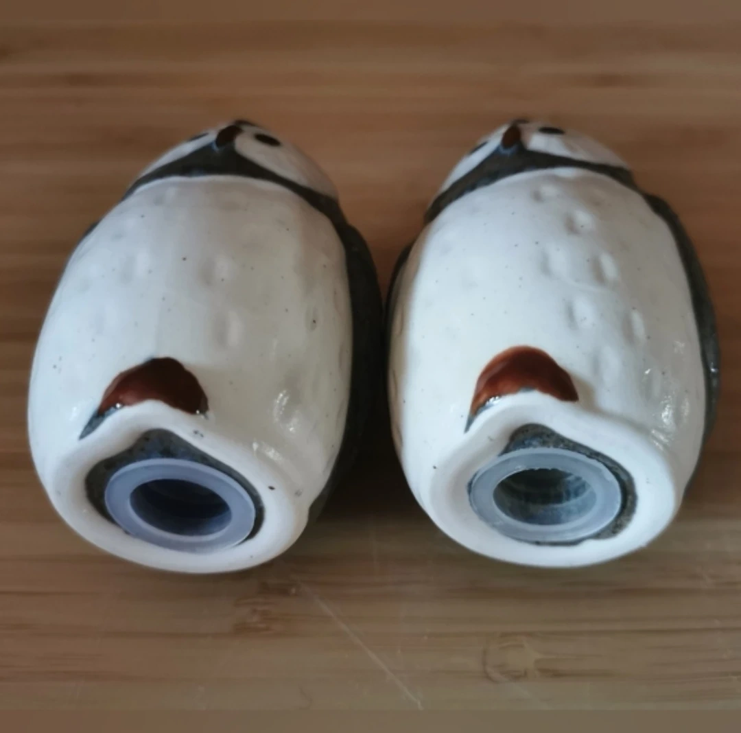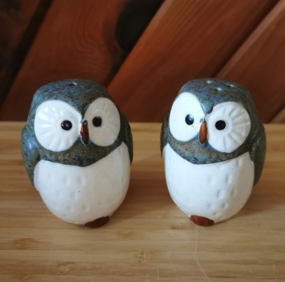 Beautiful Vintage Japan Stoneware Owl Salt and Pepper Shakers.