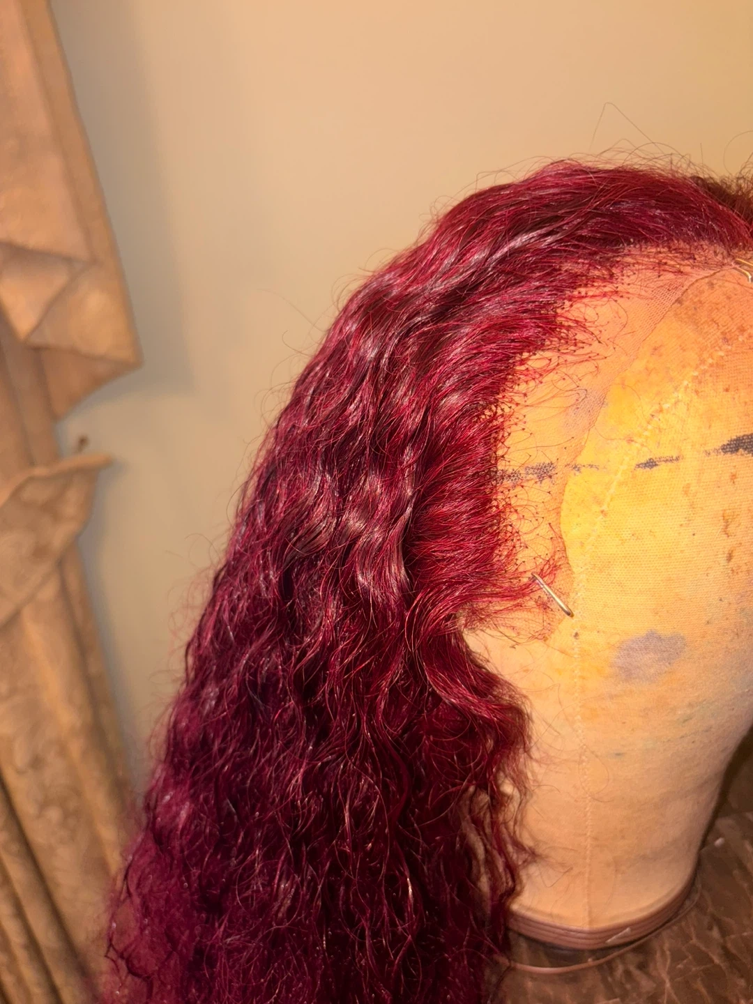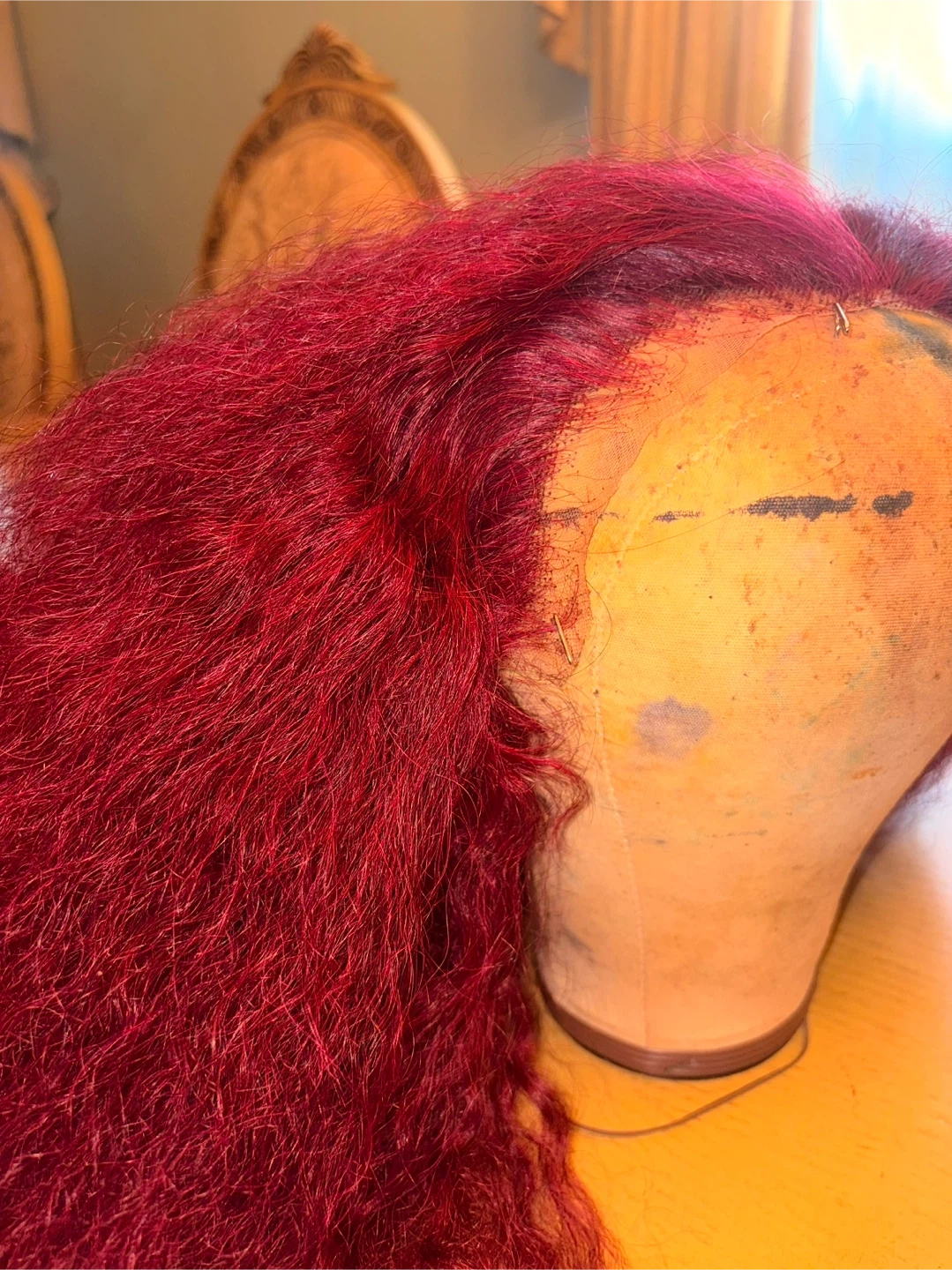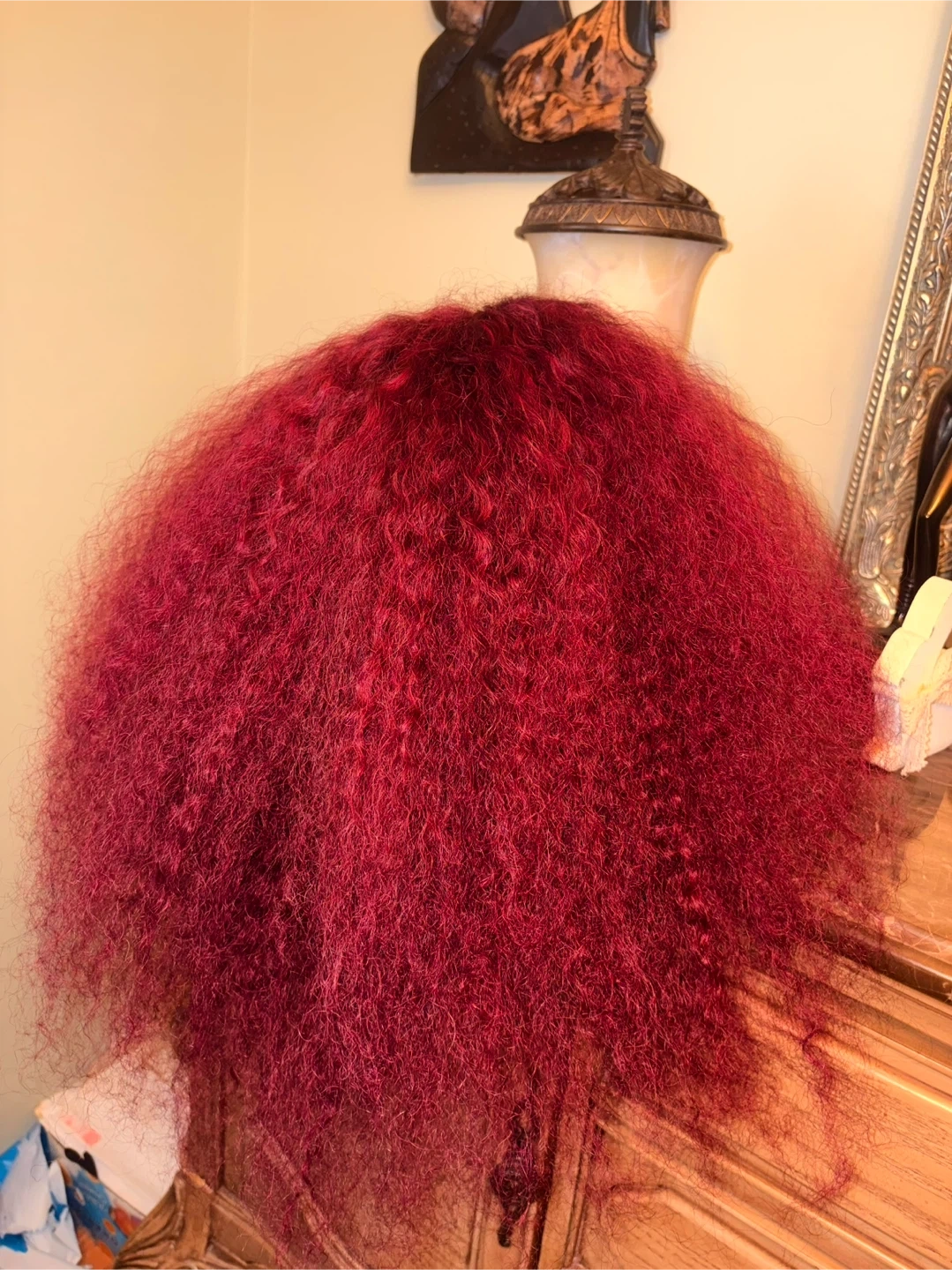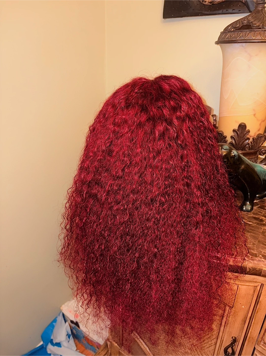 Beautiful 99J burgundy kinky curly lace front wig with 13x4 HD lace for a natural, seamless hairline.