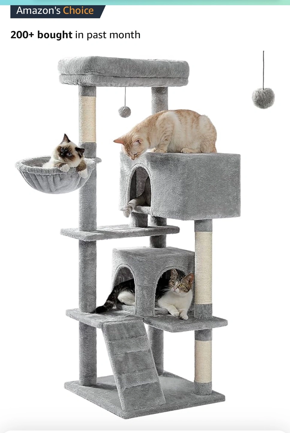 Grey Cat Tree Condo, Multi-Level Cat Tower