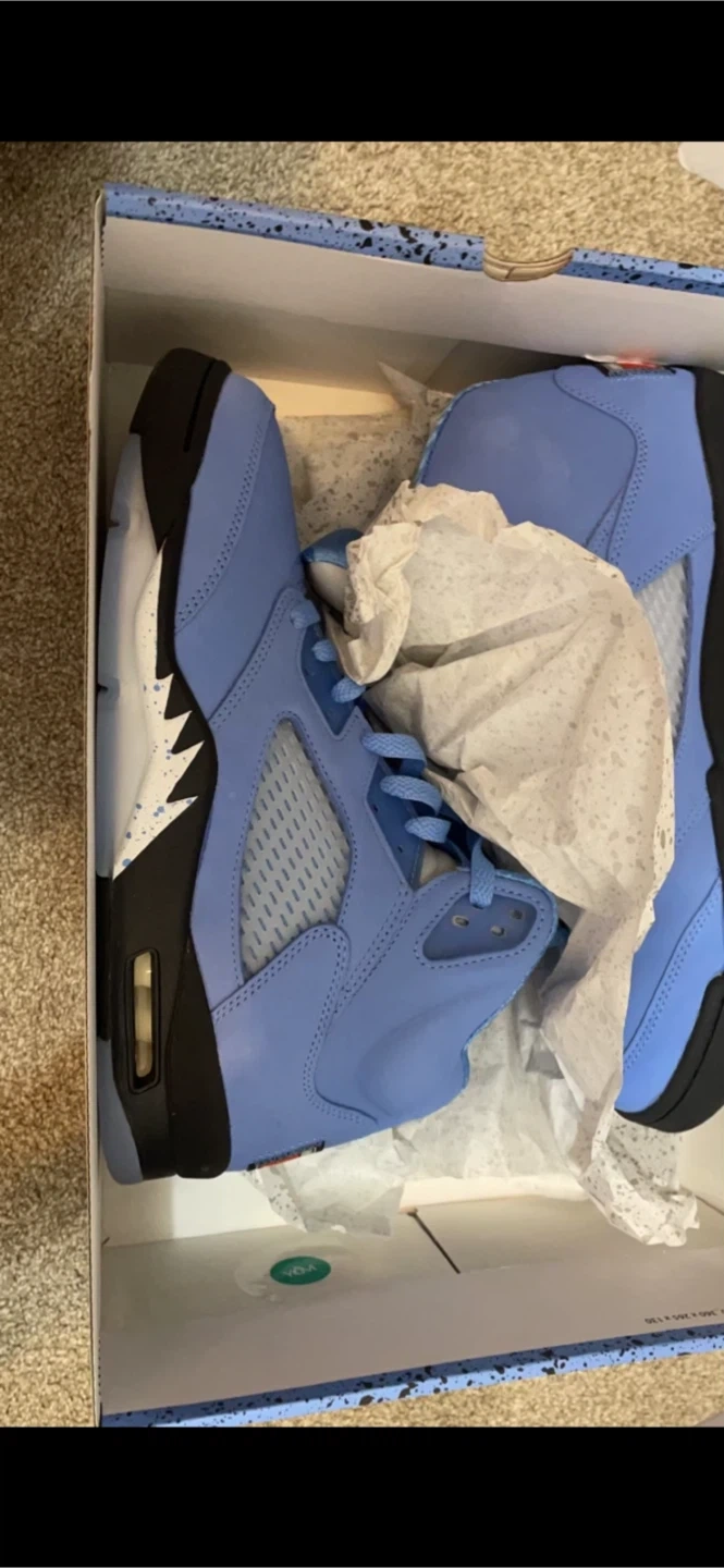 Selling a pair of Jordan 5 Retro in University Blue. They are in excellent condition and never worn no box , $220 obo