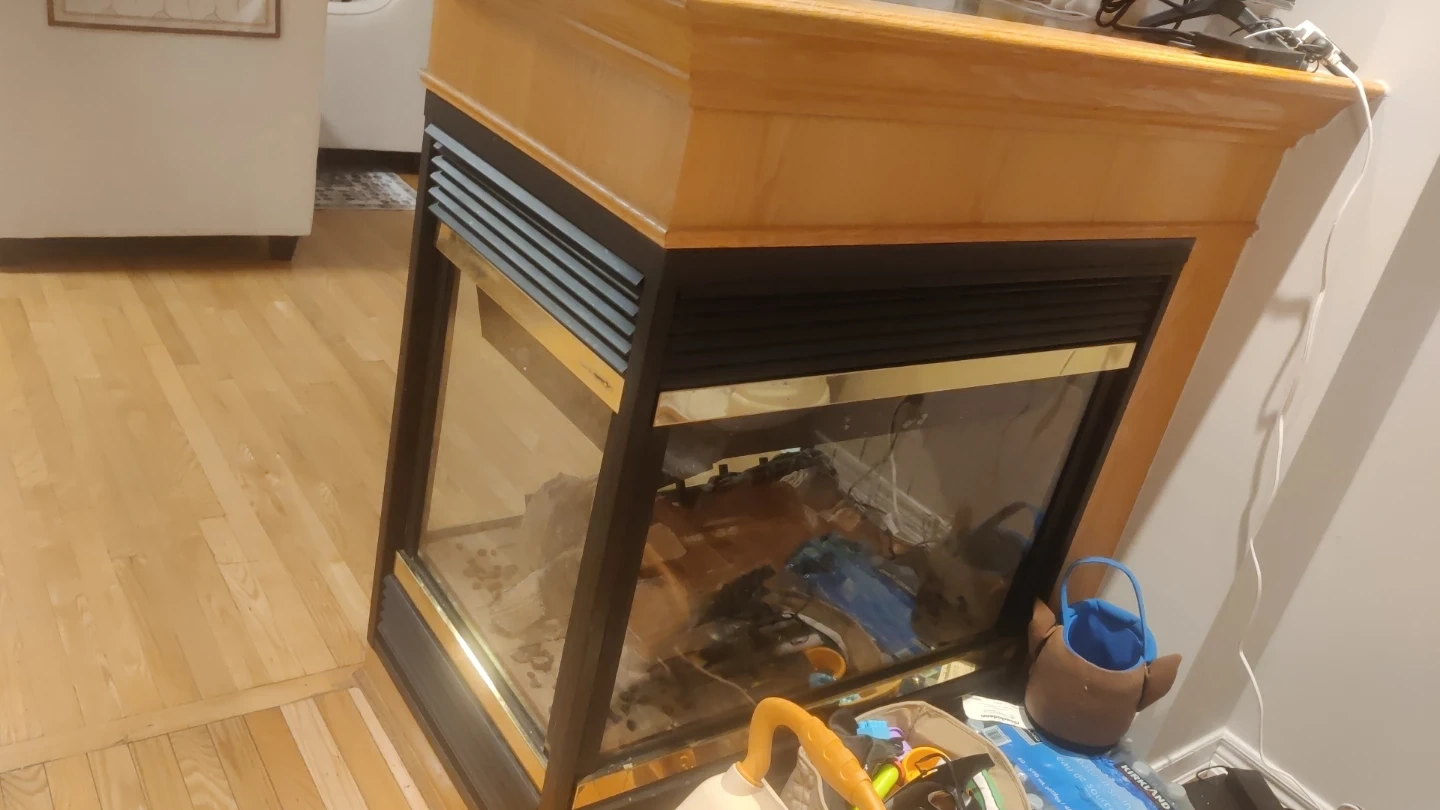 This gas fireplace insert comes with a light oak mantle. It features a glass front with a gold trim accent. It's ready to be installed and bring warmth to your space., hi all , I am going to detached this fireplace from the floor. No more need . It is Works well. Last Day is coming long weekend.. 3 to 5 April. If someone needs let me know. Price don't know. Pick-up only L5W1X5