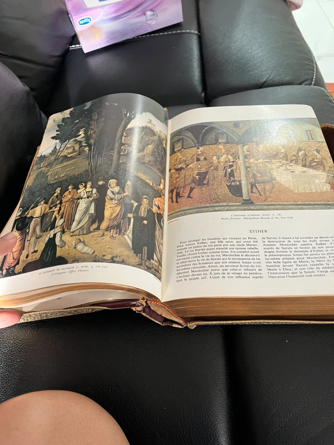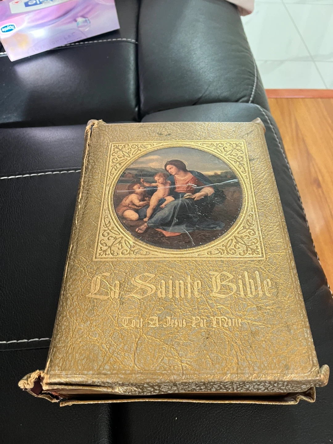 Selling a vintage copy of La Sainte Bible. It has some wear and tear consistent with its age, but it's a beautiful piece. Features lovely illustrations inside