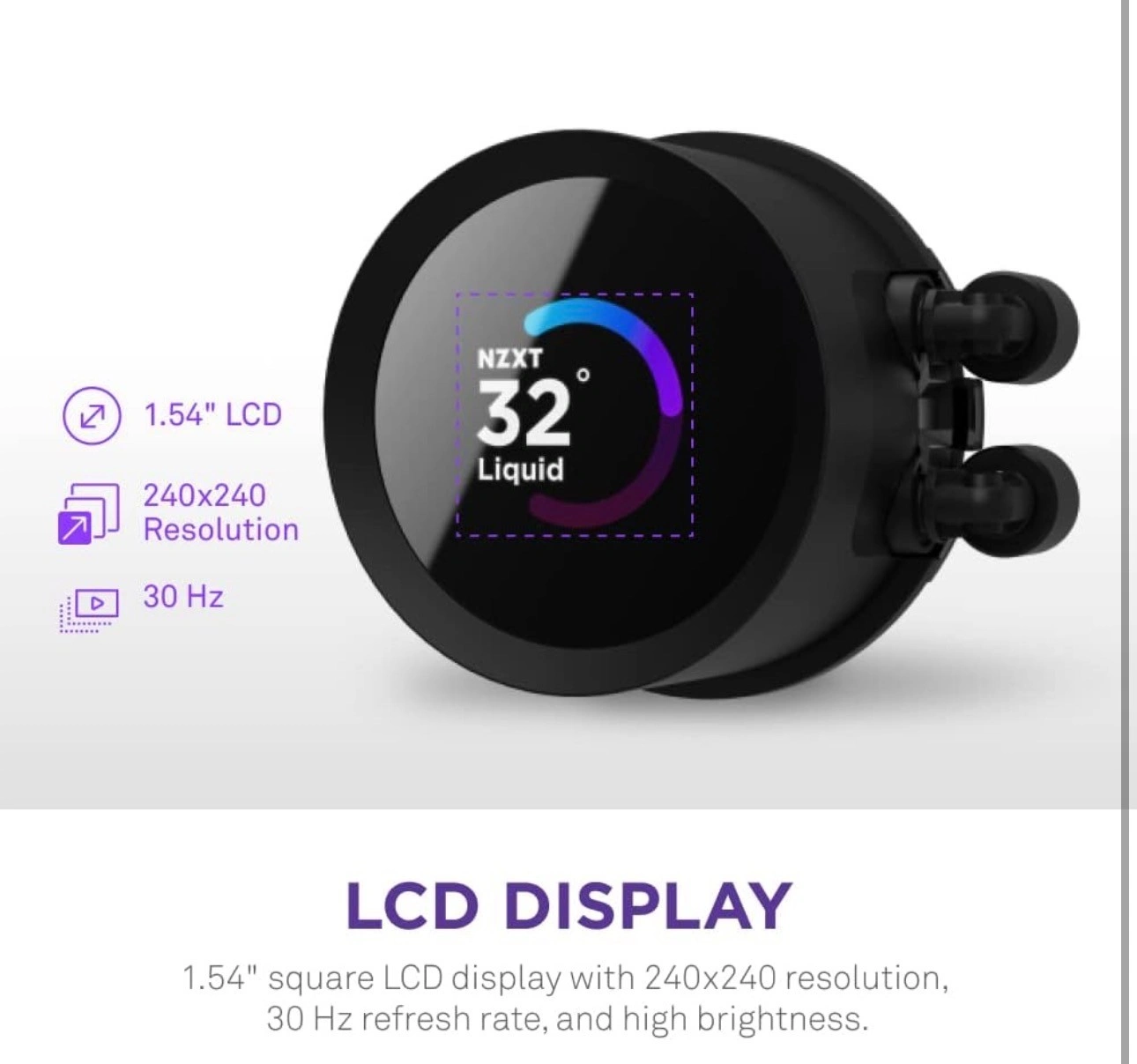 LCD DISPLAY: 1.54"" square LCD display with 240x240 resolution, 30 Hz refresh rate, and bright 300 cd/m² backlight brings on-screen content to life.