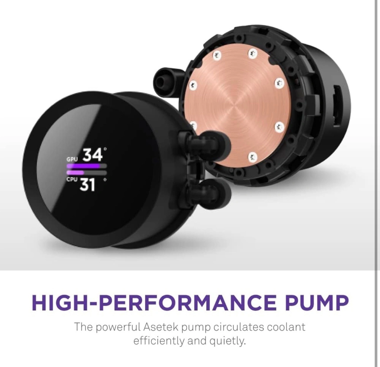 HIGH-PERFORMANCE PUMP: The powerful Asetek pump operates at up to 2,800 RPM to ensure efficient and quiet coolant circulation.