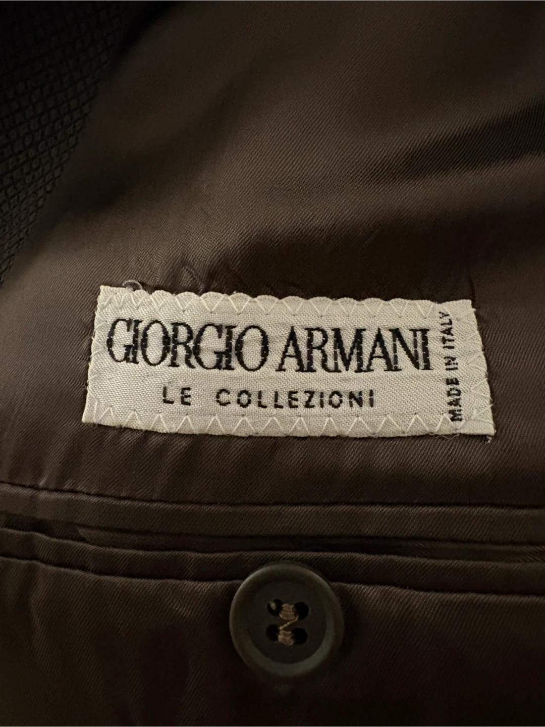 This is a Giorgio Armani Le Collezioni double-breasted blazer, made in Italy. It's a classic piece for any wardrobe.