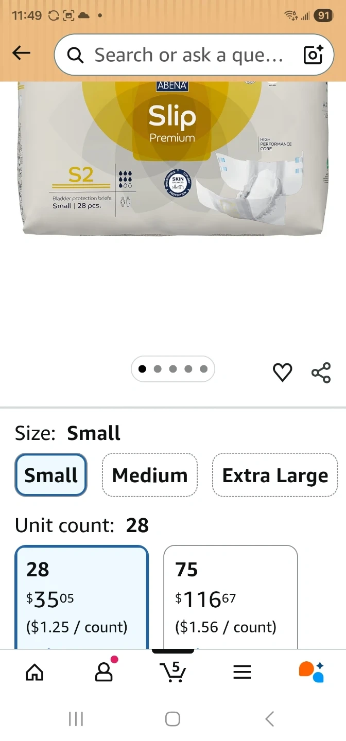 Abena Slip Premium S2 bladder protection briefs offer a high-performance core. These are disposable incontinence briefs. Comes in a pack of 28. I have 5 packs available. Can meet in Barrie
