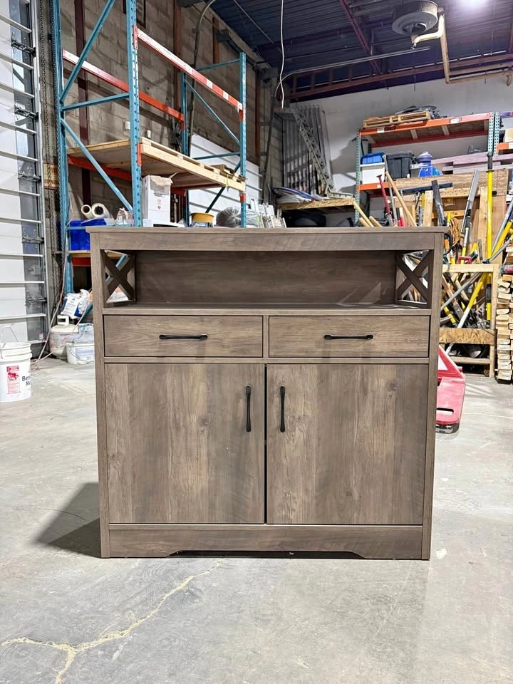 Selling two beautiful dark wood storage cabinets in excellent condition. They are sturdy, clean, and perfect for many uses around the house. Features: 2 smooth sliding drawers, large cabinet with shelf inside, open top shelf for storage or decor, modern black handles, strong and well built, nice dark wood finish that matches most homes. Price: $400 each or $750 for both.