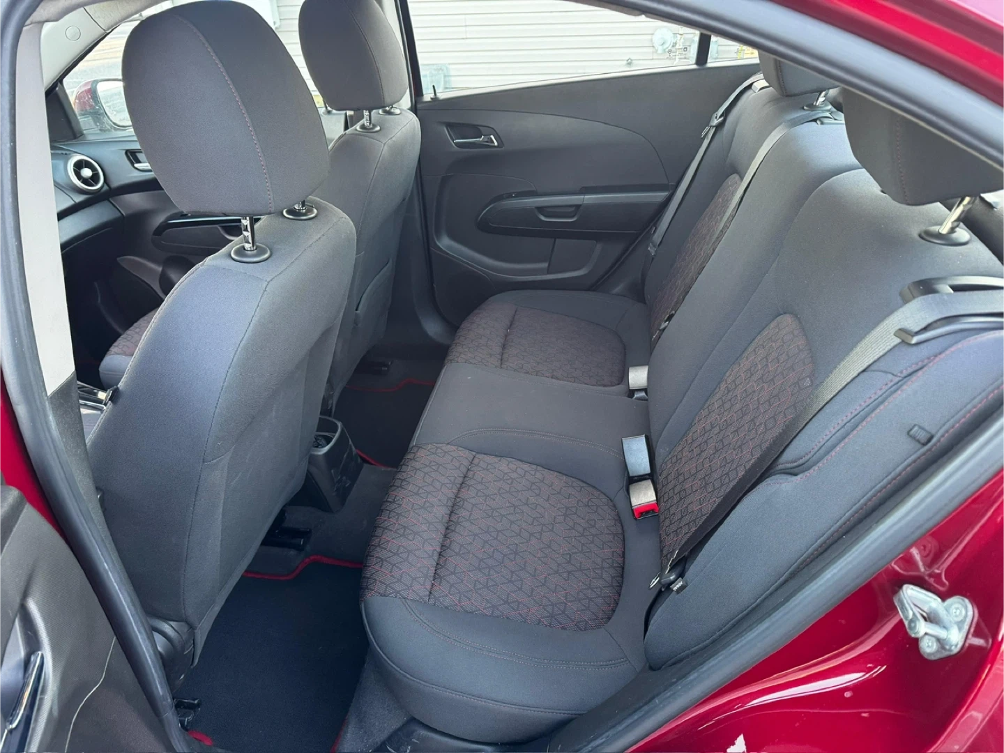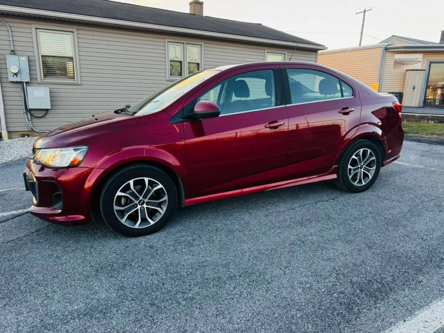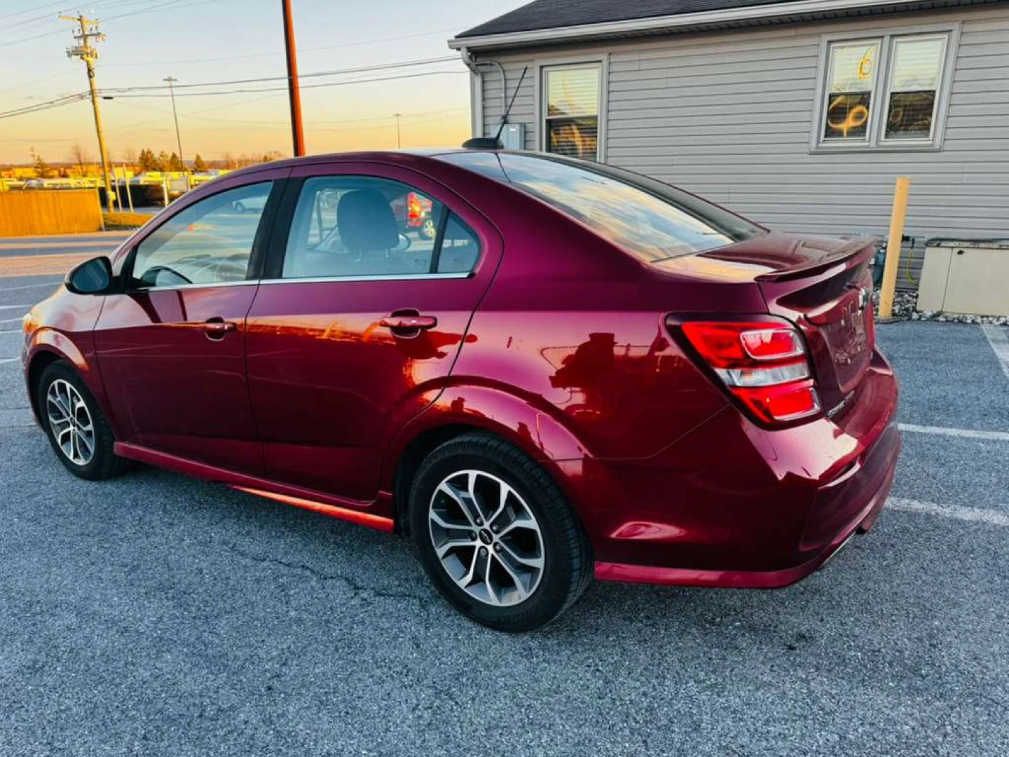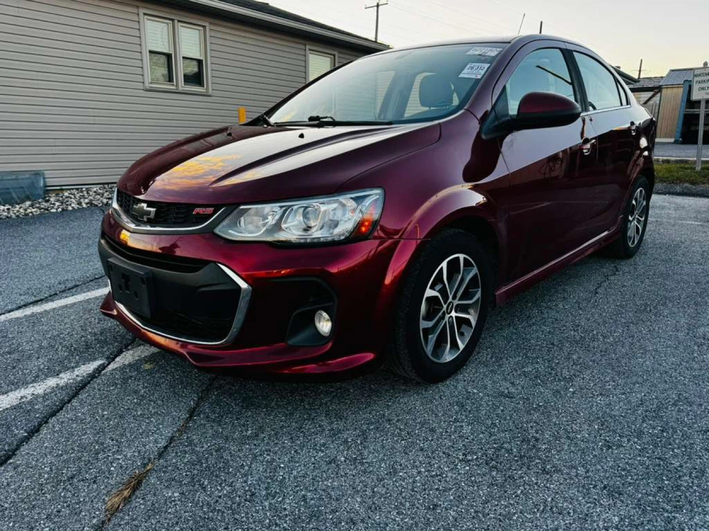 Selling a burgundy Chevrolet Sonic LT sedan. It appears to be in good condition and ready for a new owner!
