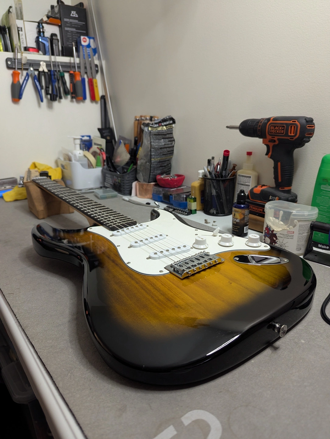 100A perfect beater guitar! Demo:⬇️ https://www.facebook.com/share/v/1Ad16hBztD/ GWL Stratocaster Style Electric Guitar Cosmetics: 9/10 ✔️ Fret Leveled ✔️ String height/action ✔️ Intonation ✔️ Fret Crowning ✔️ Fret end dressing ✔️ Fret Polish ✔️ Fresh Strings Ernieball 9/42 ✔️ Intonated $200 obo You can test it before buying Pick up in Scarborough