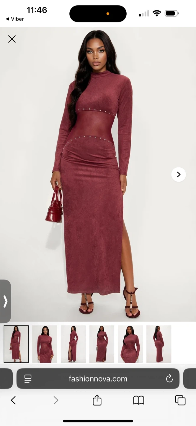 Fashion Nova Burgundy Long Sleeve Maxi Dress