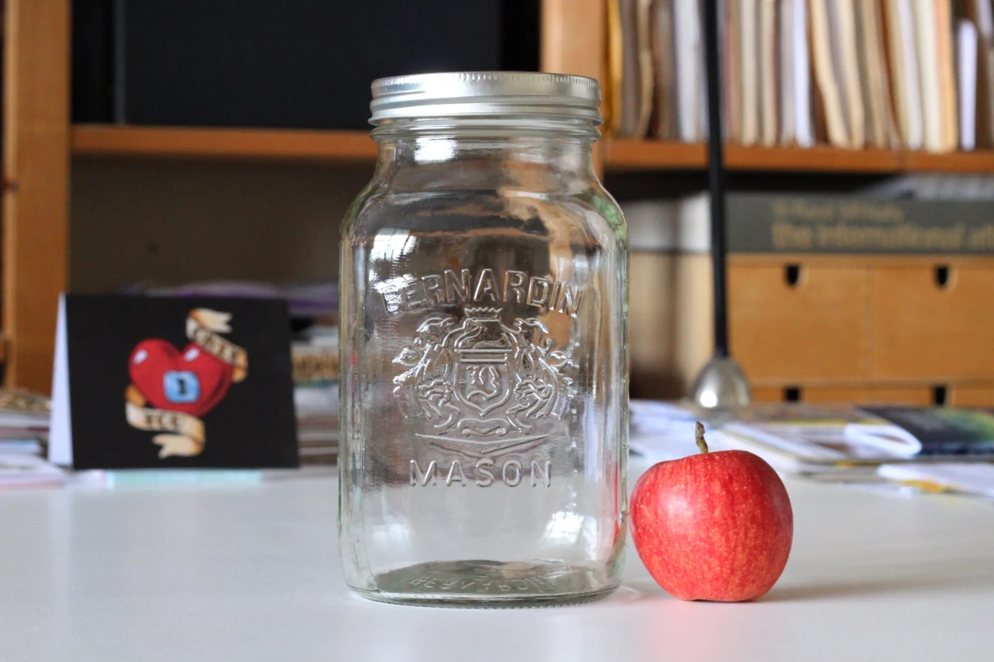 A Vintage 1.5 L Wide-Mouth Bernardin Mason jar.