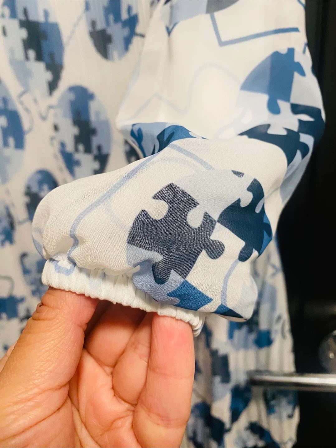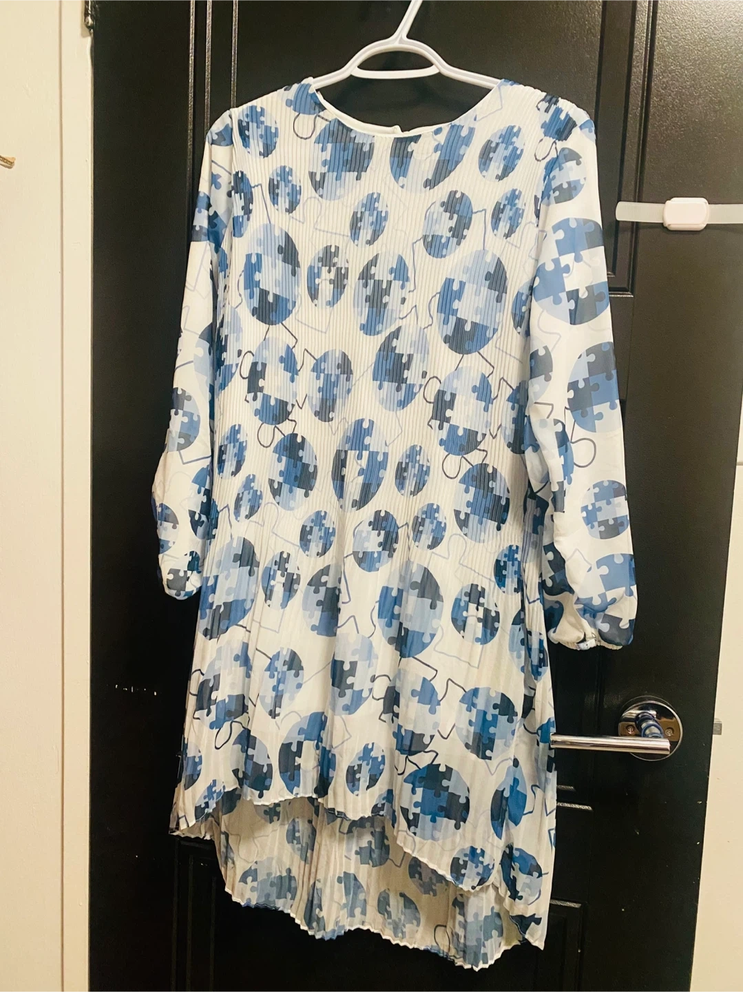 Selling a lovely HSR by Hasarskin dress! It's a size 40 and features a unique blue and white puzzle-piece inspired pattern. Perfect for adding a touch of fun to your wardrobe.