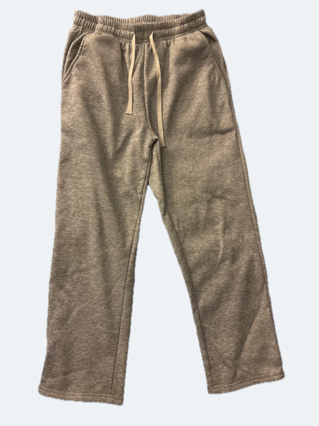 Comfortable grey sweatpants with an elastic waistband and drawstring. Made of soft, breathable fabric. Perfect for lounging or casual wear.