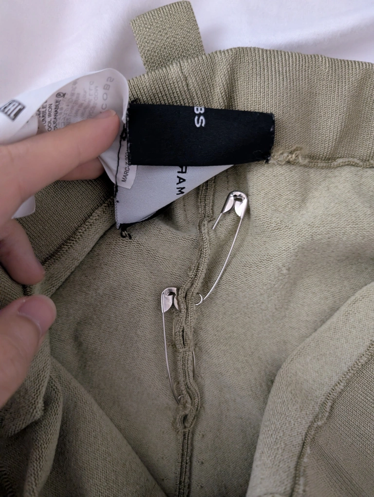 one part of the back is torn and held up by safety pins, you need to sew it. Look at 3rd and 4th pic