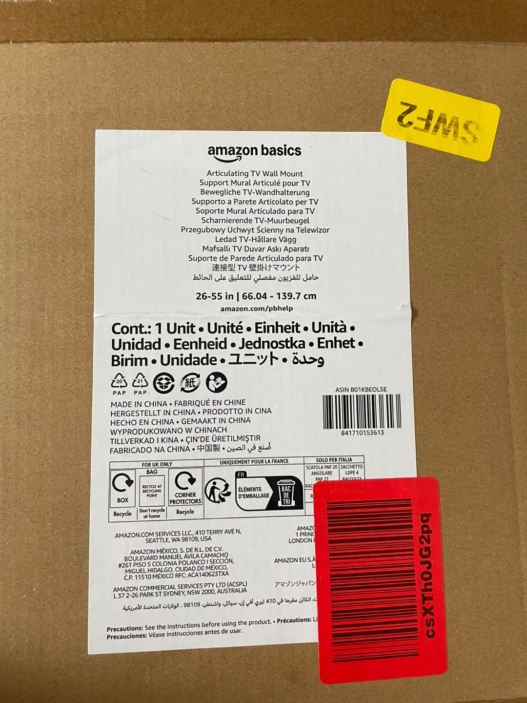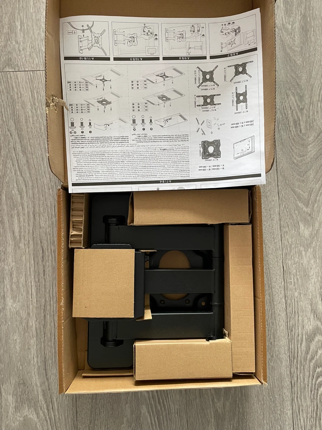 Articulating TV wall mount for VESA mounting. Supports TVs from 26-55 inches. Includes all necessary hardware for installation. Mount is black and made of metal.