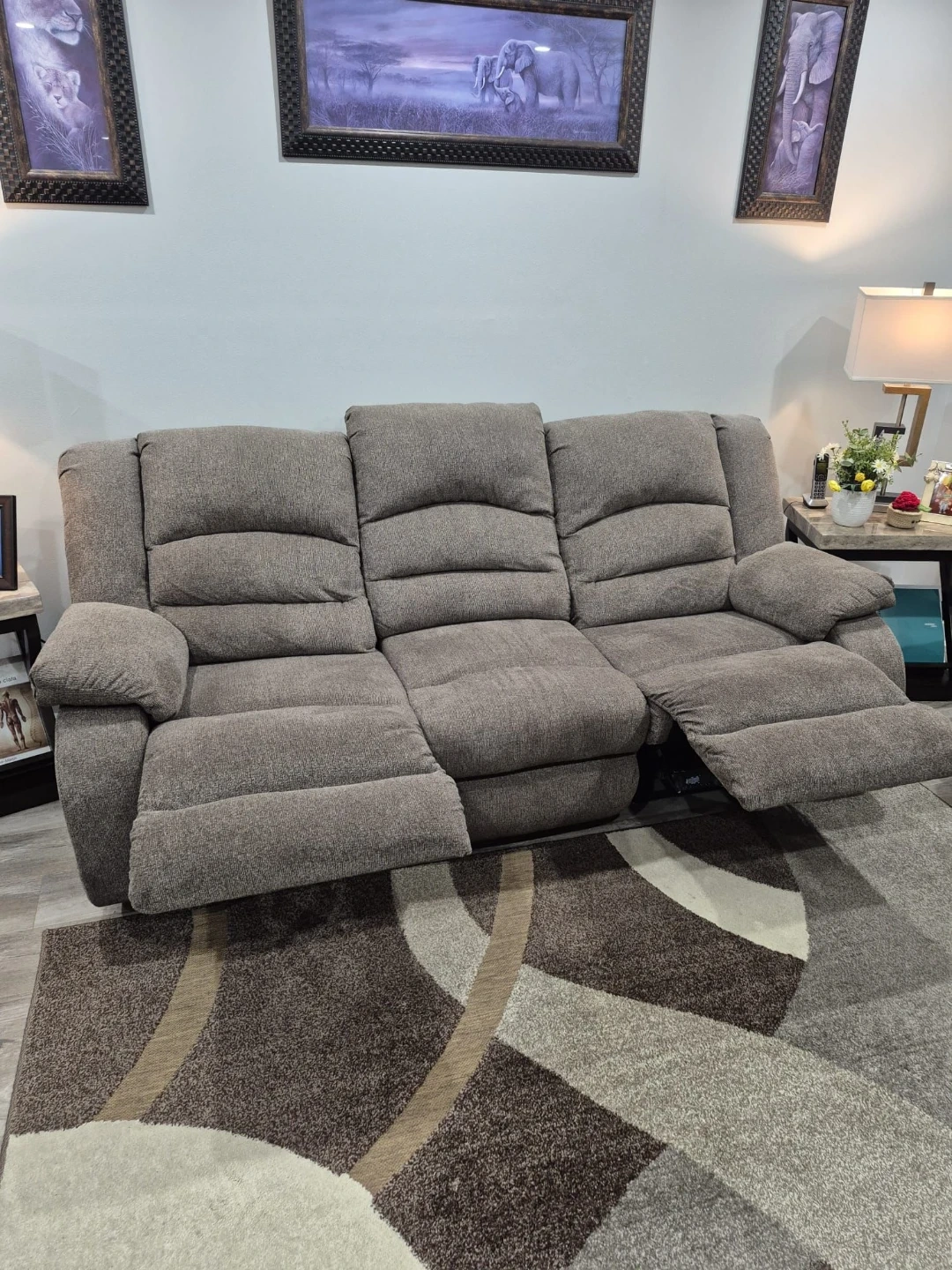 Grey Fabric Reclining Sofa Duo